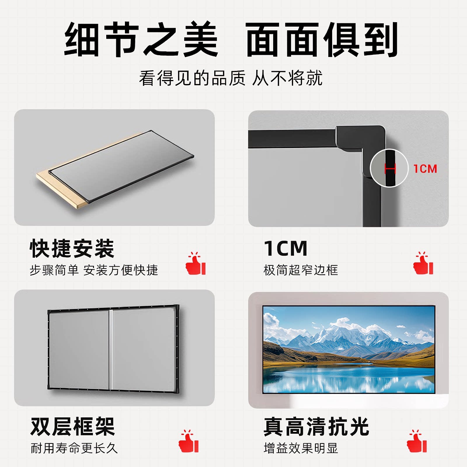 画框幕布抗白天光直投影仪布幕100寸中长焦高清窄边抗光黑钛晶家用电动激光硬屏菱栅壁挂灰晶透声幕框架幕屏