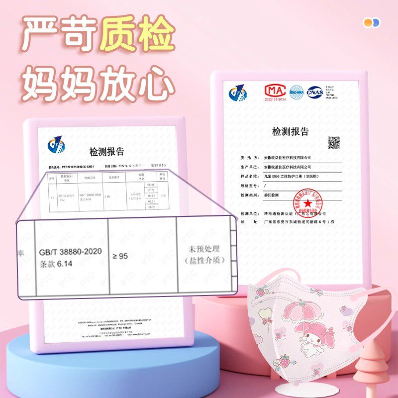 4D儿童KN95口罩立体学生卡通好中小学生3-12岁正品防护可爱花粉