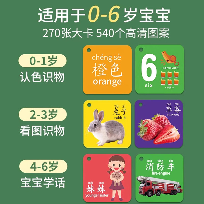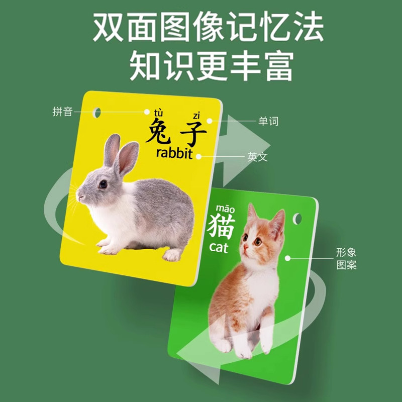 动物卡片早教认知启蒙书儿童识字宝宝看图识物图幼儿数字益智玩具