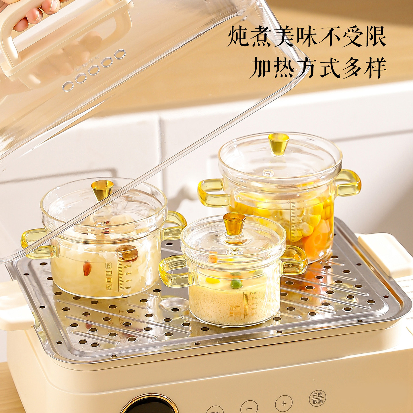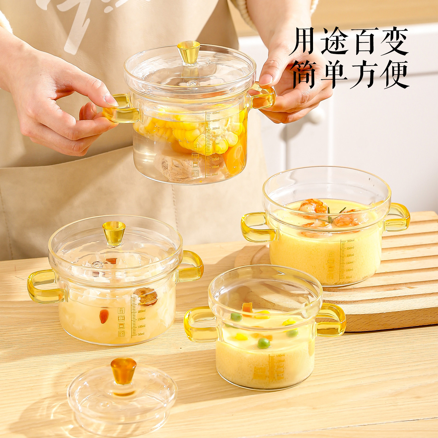 川岛屋高硼硅玻璃炖盅隔水炖燕窝银耳辅食家用带盖双耳蒸蛋碗汤盅
