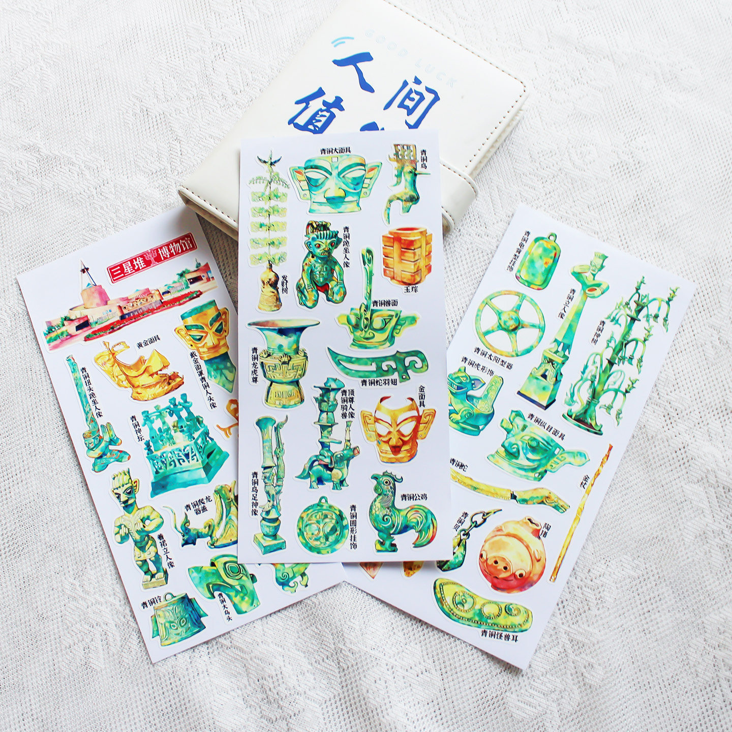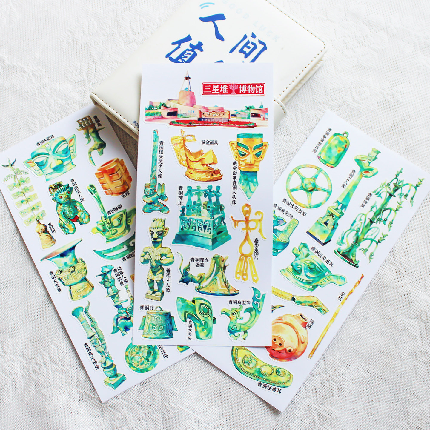 三星堆博物馆文物贴纸四川成都旅游传统文化文创手抄报识字贴画