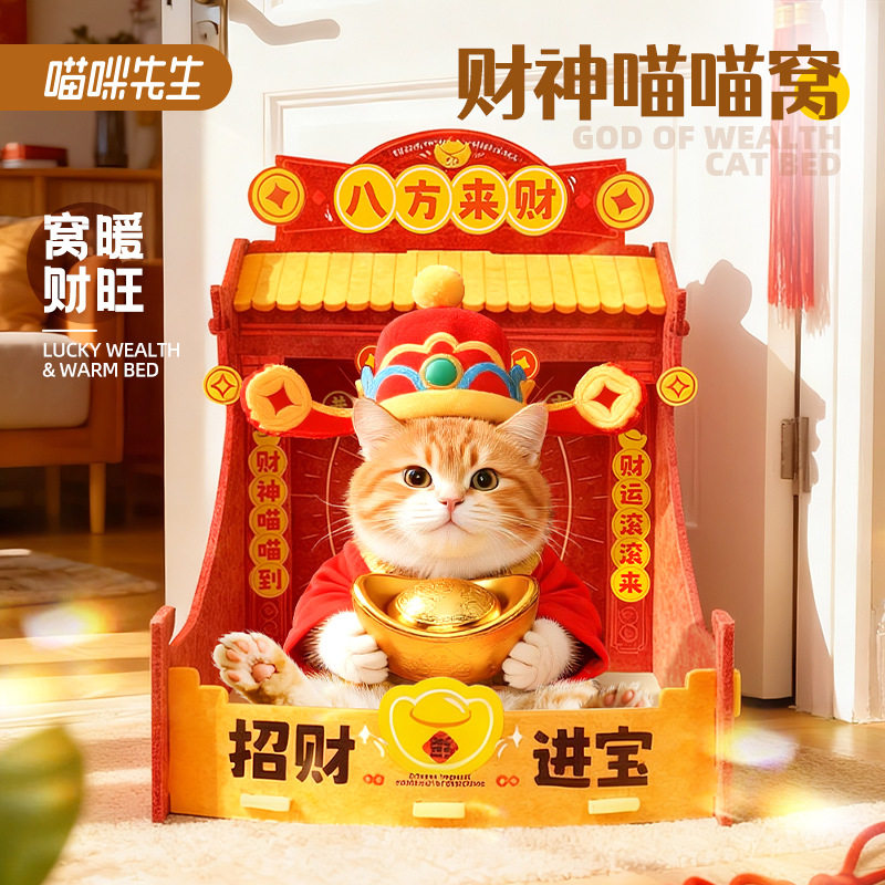 喵咪先生财神猫窝新年招财保暖半封闭四季通用猫狗睡窝沙发宠物窝