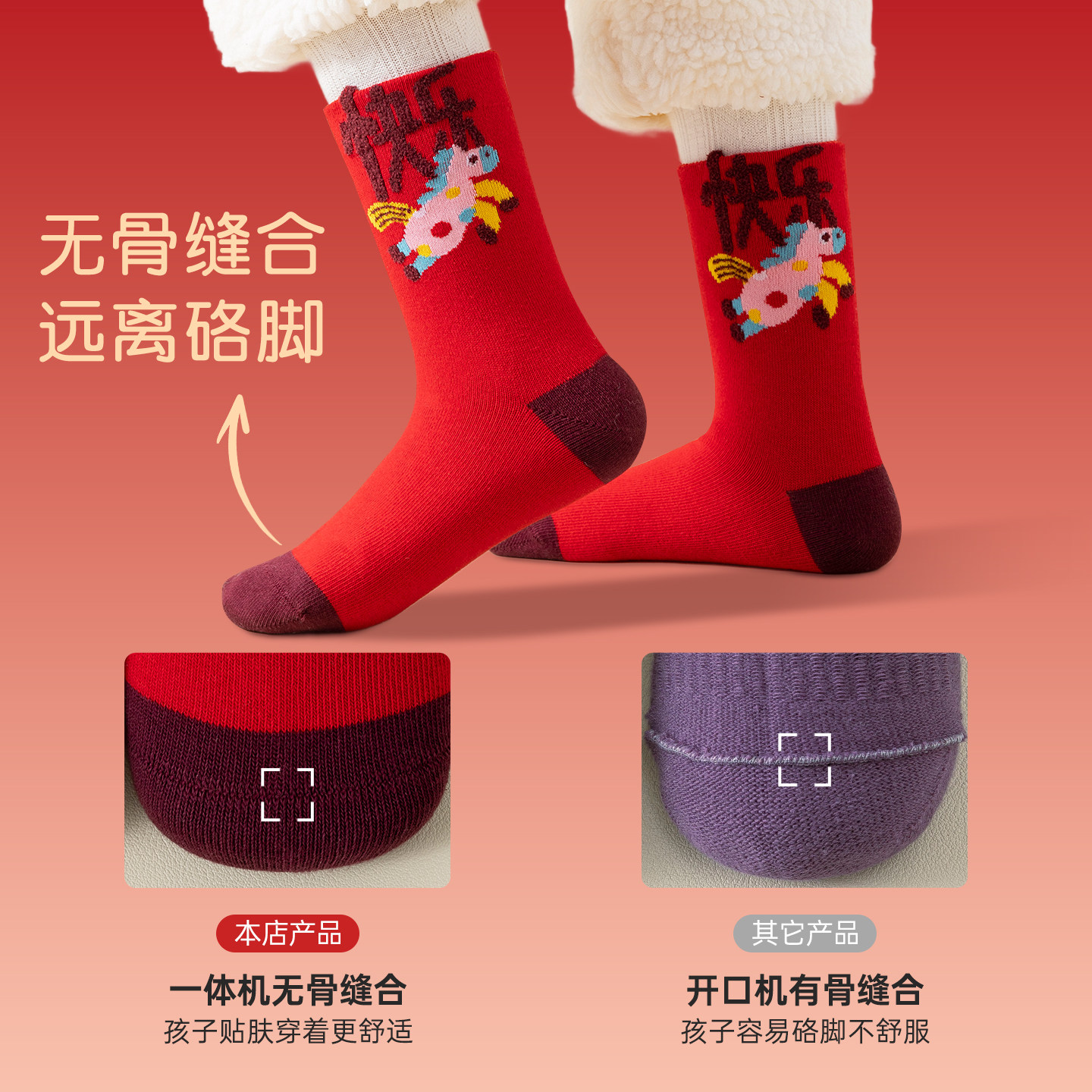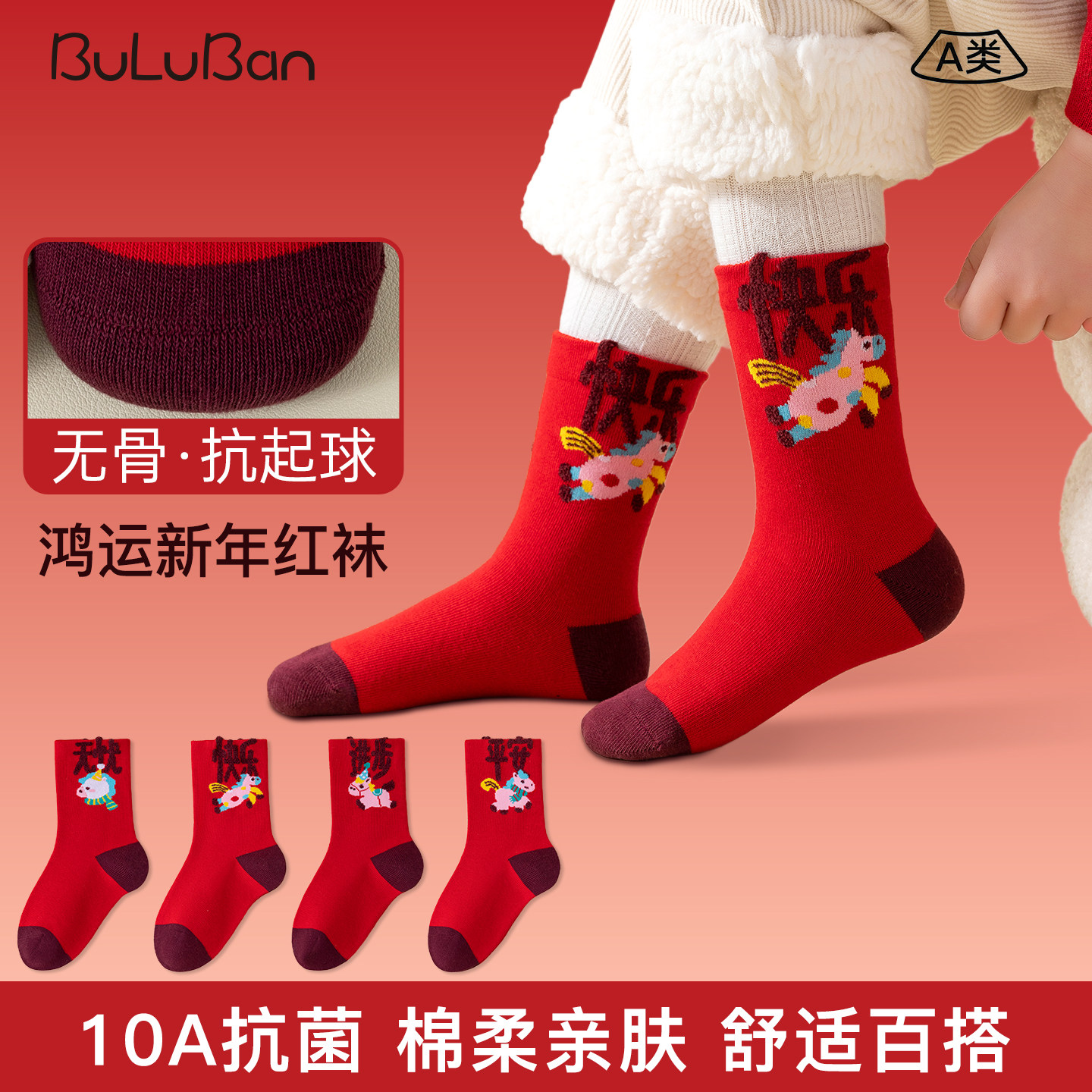 儿童红色袜子新年秋冬季马年纯棉男女童袜宝宝袜春款本命年中筒袜