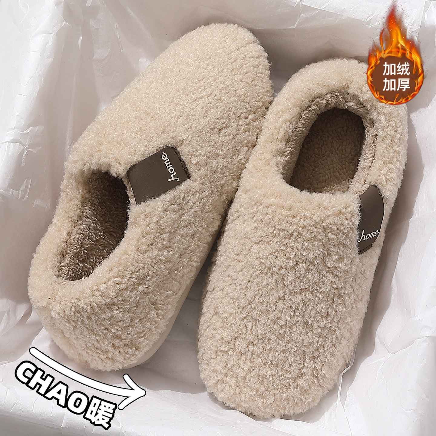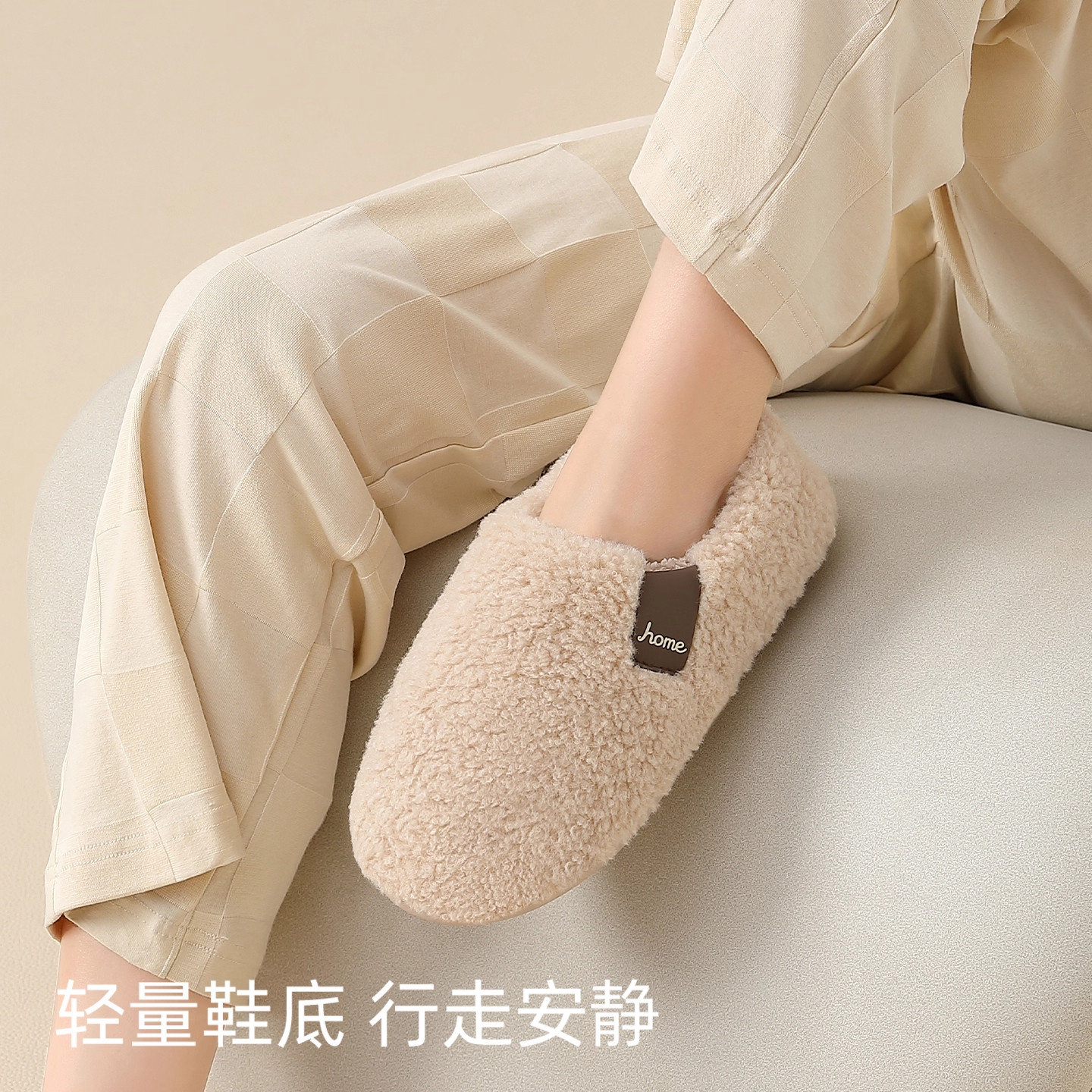 朴西棉拖鞋女士秋冬季厚底简约保暖室内居家用软底防滑情侣棉拖男