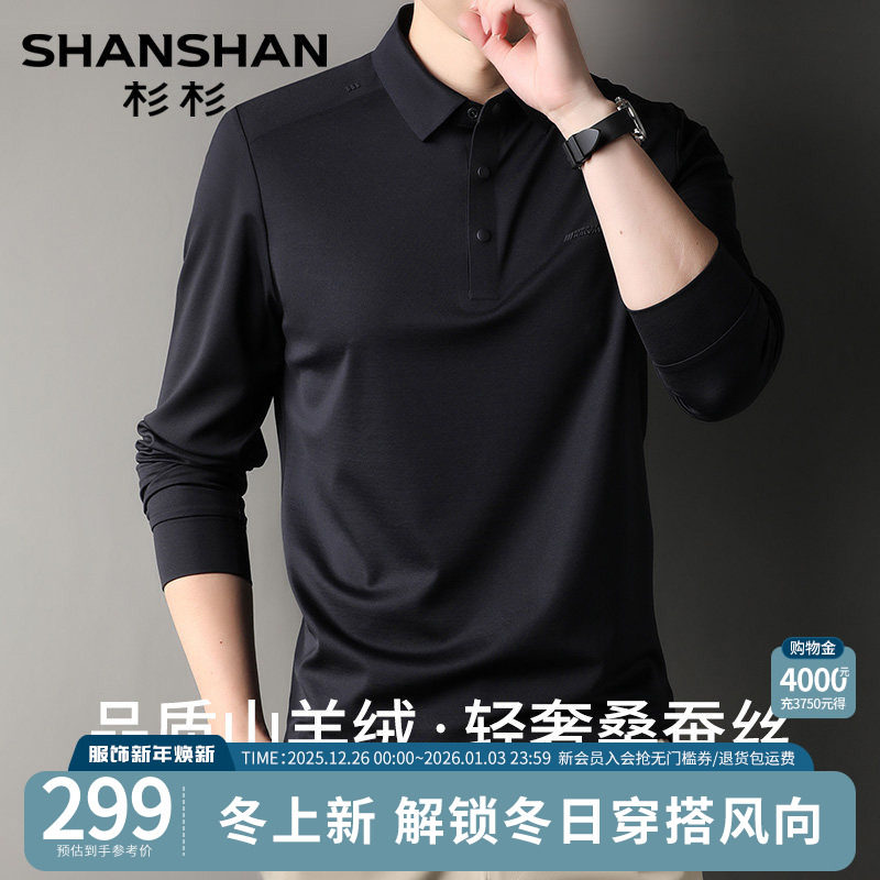 【山羊绒】杉杉男士Polo衫2025秋季新款休闲商务长袖T恤