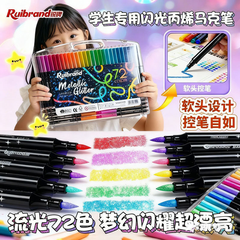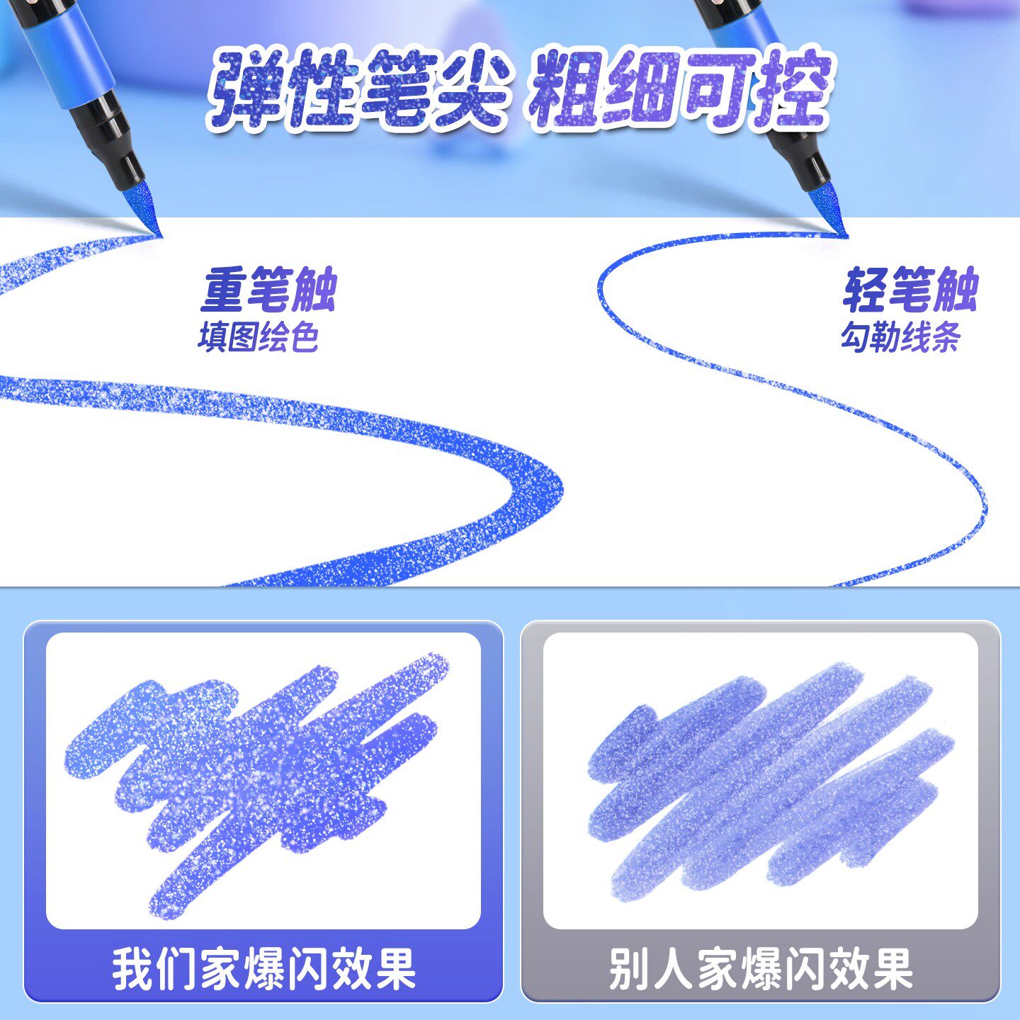 彩色闪光笔学生用儿童闪亮轮廓闪粉高光水彩笔啫喱发光流沙银光