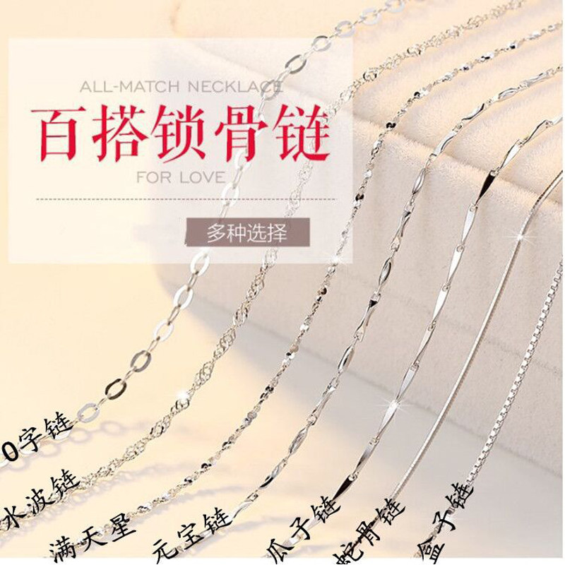 999纯银项链女925银链子可穿吊坠挂坠足银素链正品银饰官方旗舰店
