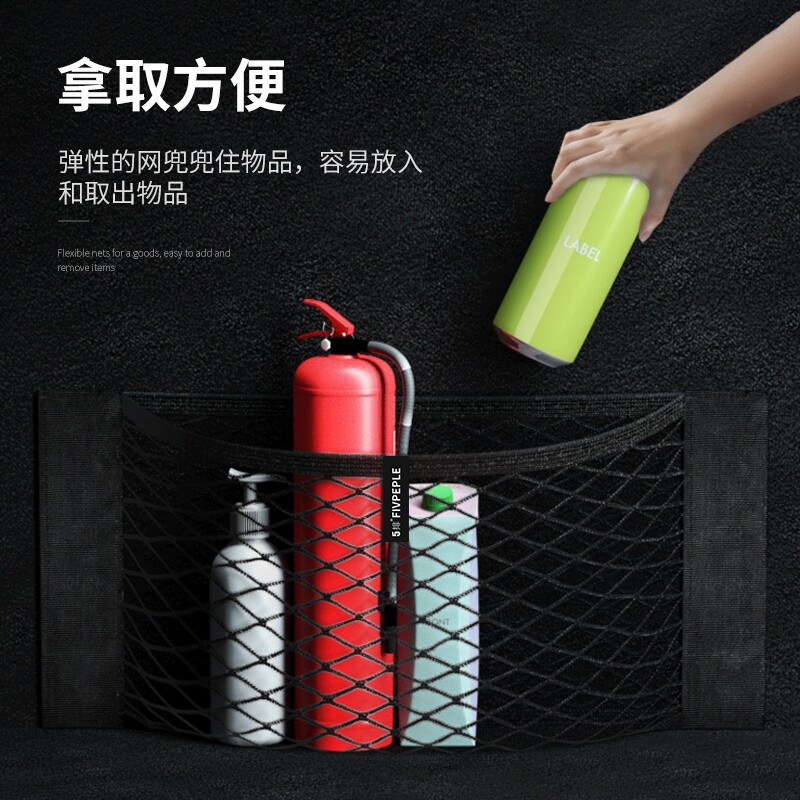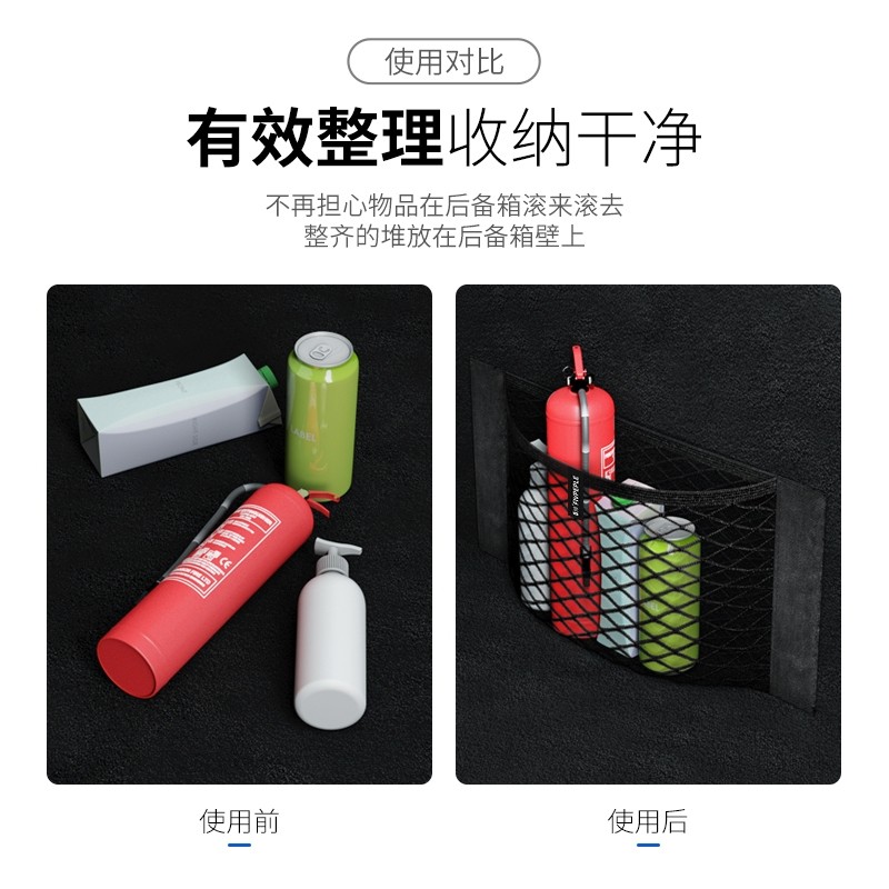 汽车后备箱网兜收纳固定神器魔术贴车置物袋车载灭火器固定收纳网