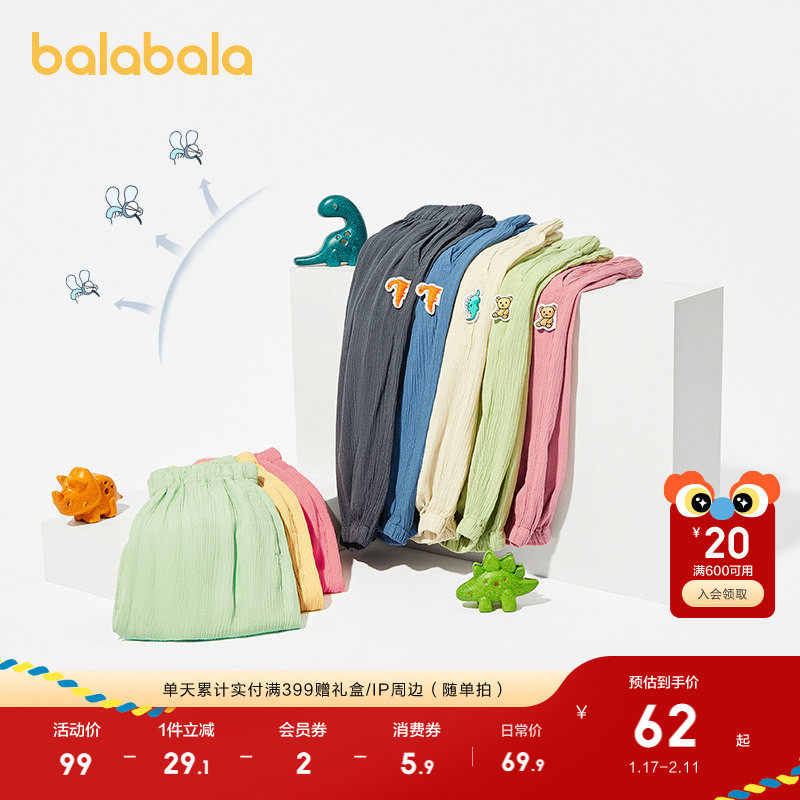 巴拉巴拉儿童裤子男童防蚊裤夏季薄款新宝宝长裤女童休闲裤潮百搭