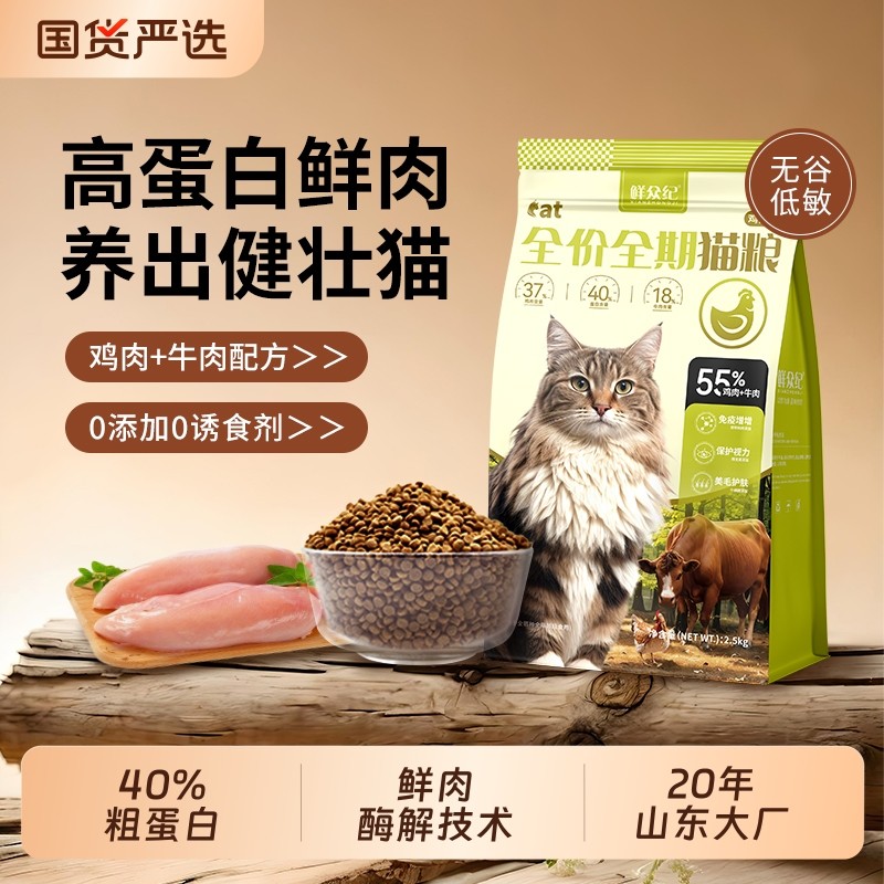 鲜众纪鲜肉猫粮营养全价成猫幼猫增肥发腮高蛋白流浪猫10斤实惠装