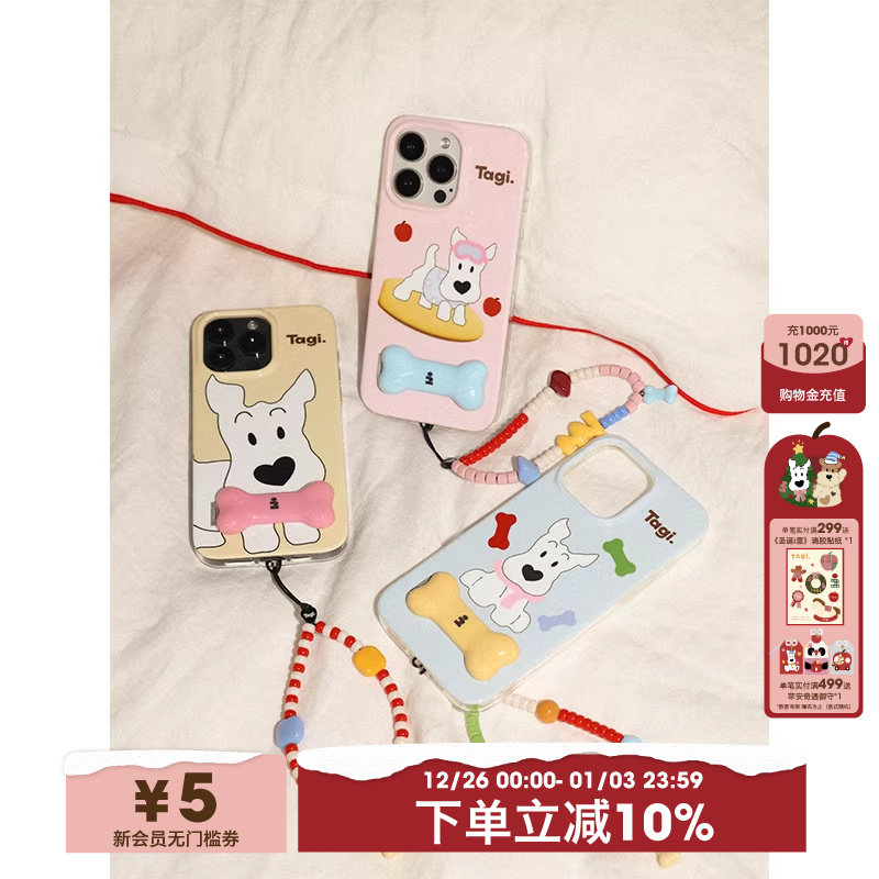Tagi.《哈哈》开心餐桌撞色小骨头隐藏小尾巴折叠金属支架手机壳手机链条苹果17pm/16pm