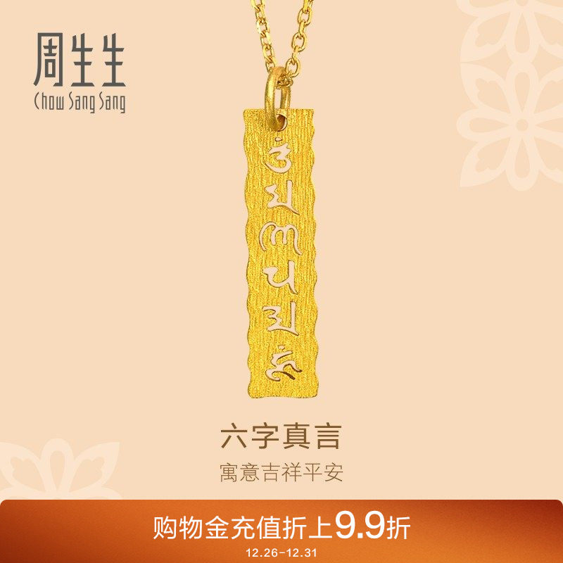 周生生黄金吊坠文化祝福六字真言足金吊坠女83215P计价