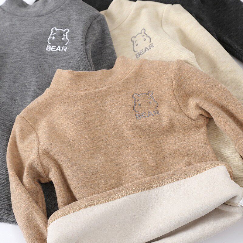 宝宝儿童男童打底衫加厚棉秋款中小童半高领磨毛内搭上衣长袖T恤
