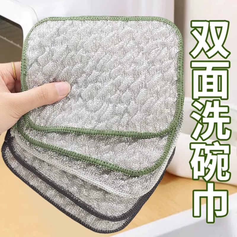 钢丝洗碗布厨房专用银丝棉纱洗碗巾双层加厚不易沾油抹布刷碗神器