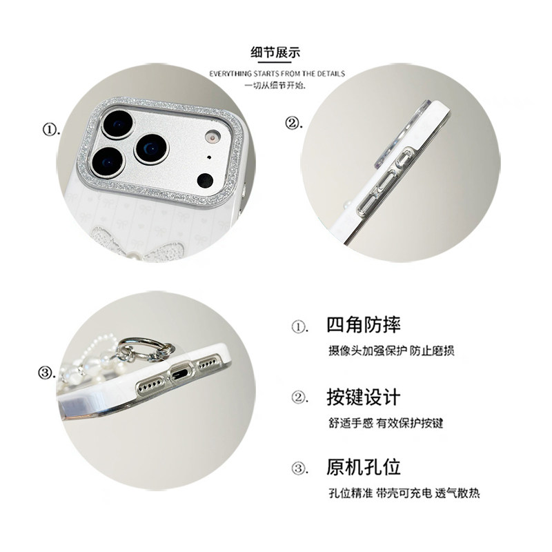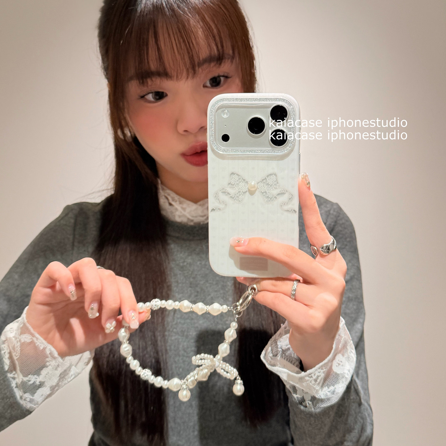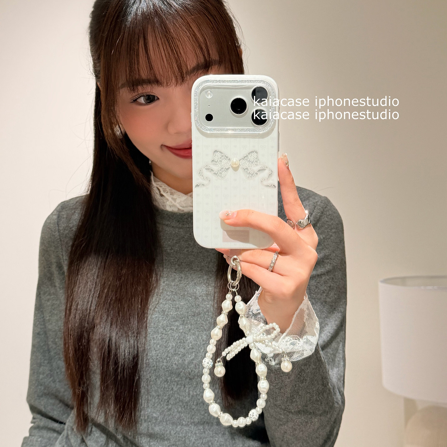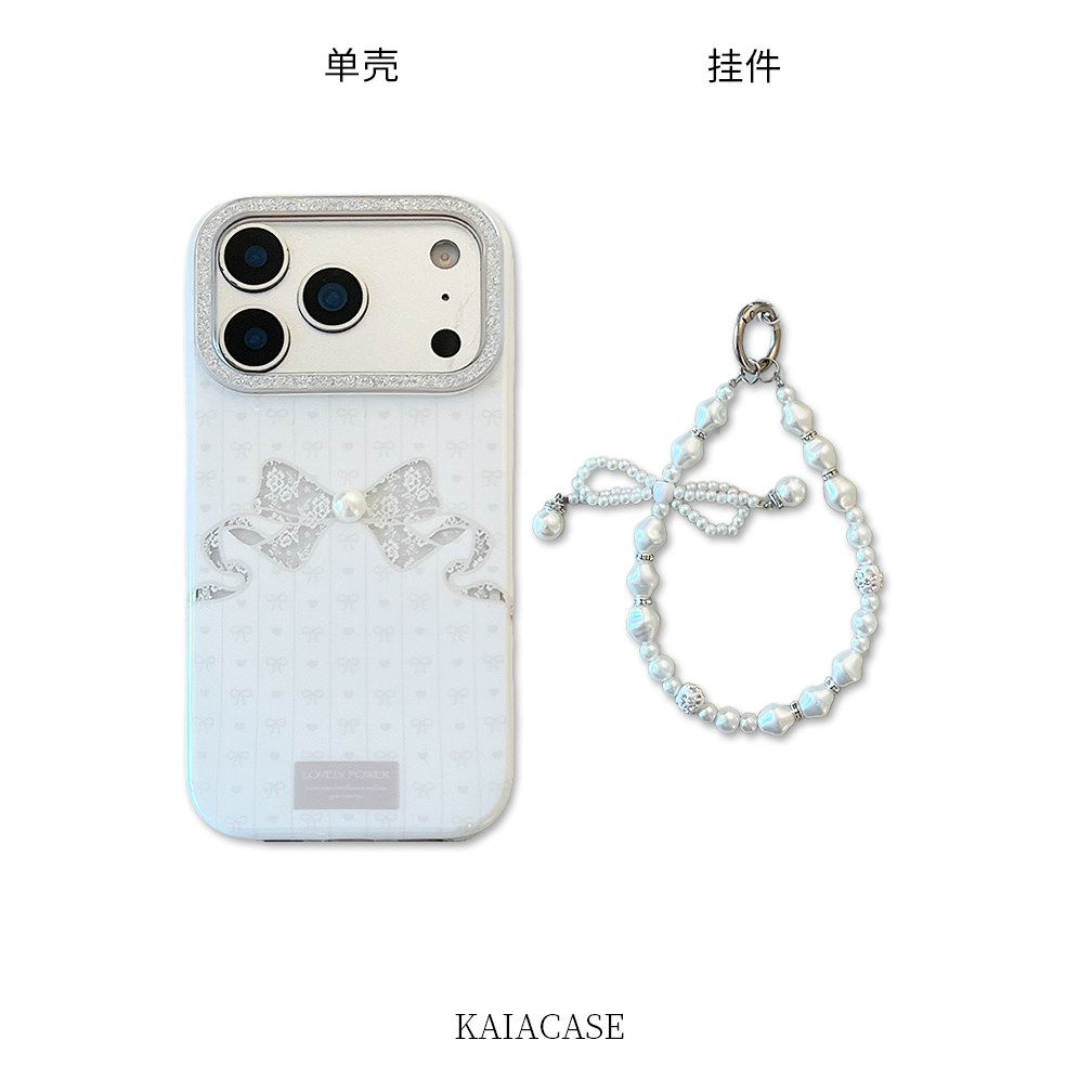 kaia 法式温柔蕾丝蝴蝶结珍珠适用苹果17promax手机壳iphone16pro新款13女14pro腕带链条15pro全包防摔手机套