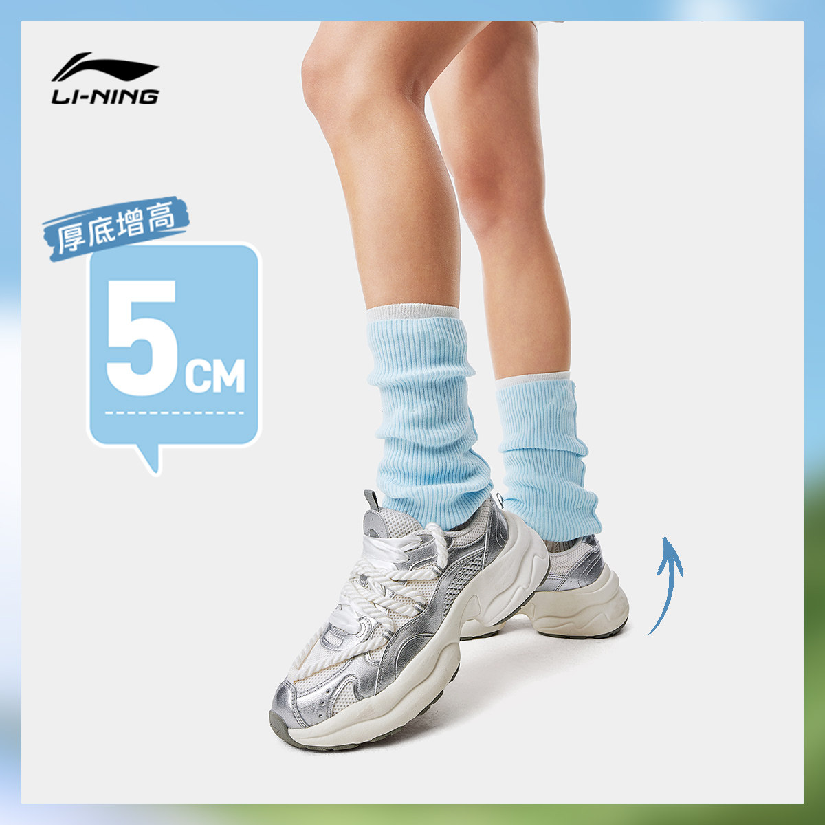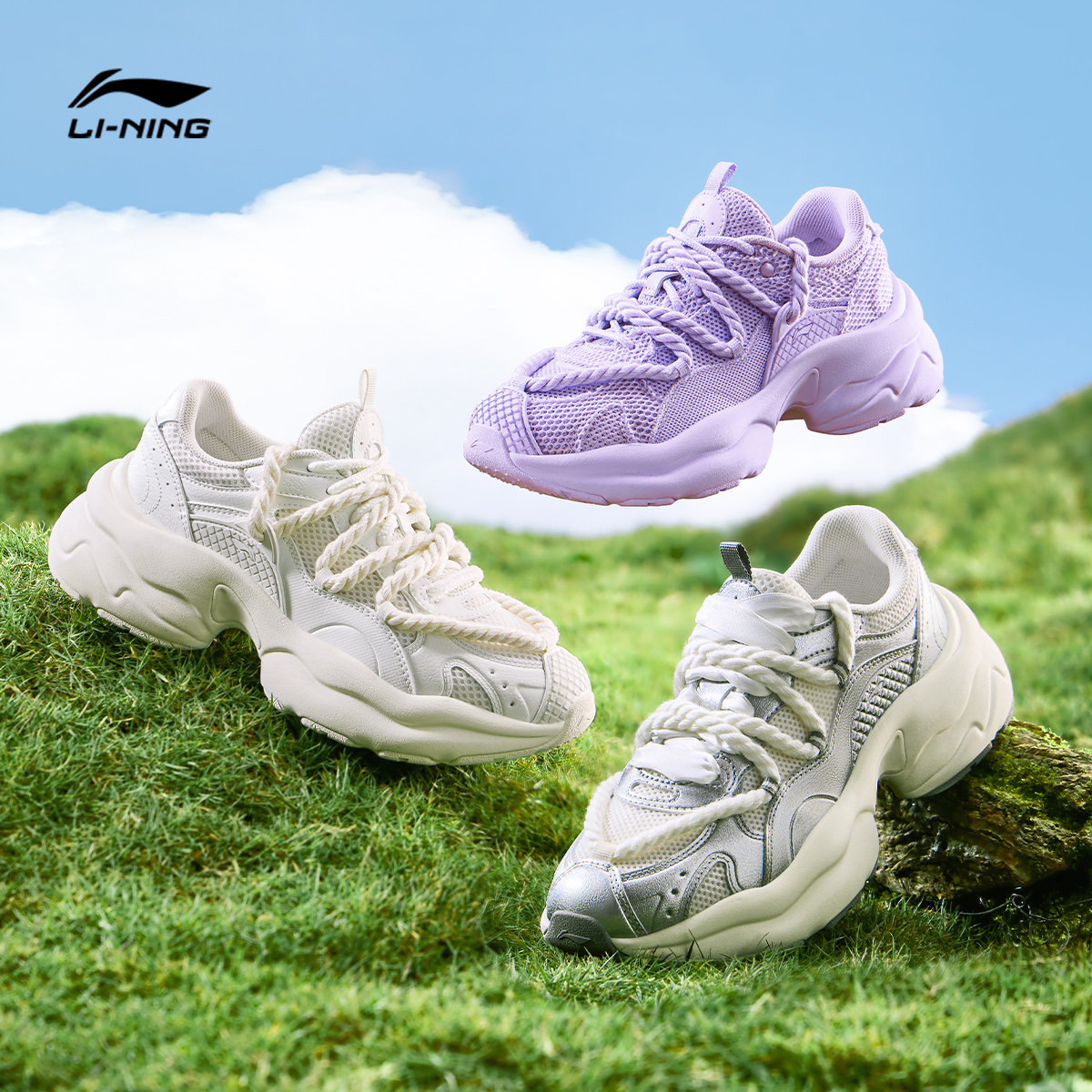 李宁泡泡糖休闲鞋女鞋增高双鞋带女士老爹鞋25新款网面低帮运动鞋