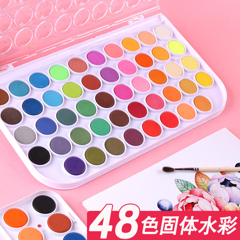 水彩颜料套装48色固体水彩颜料盒便携式爱涂绘初学者水粉饼手绘儿