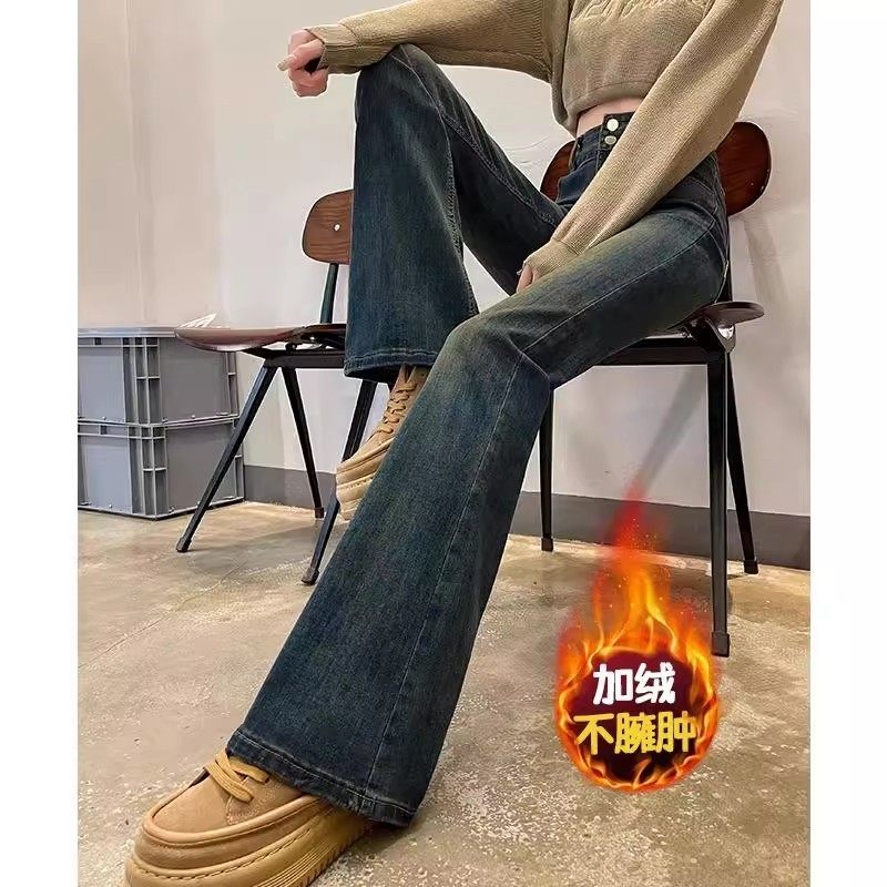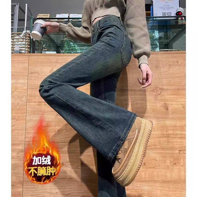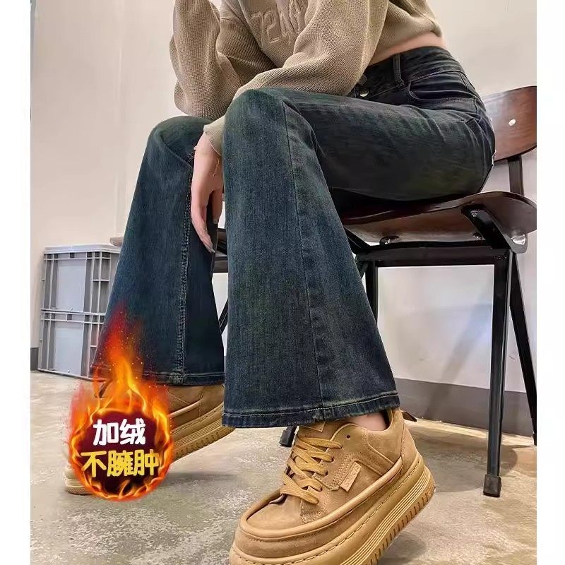 大码加绒高腰微喇牛仔裤女秋冬宽松阔腿显瘦爆款辣妹喇叭裤显腿长