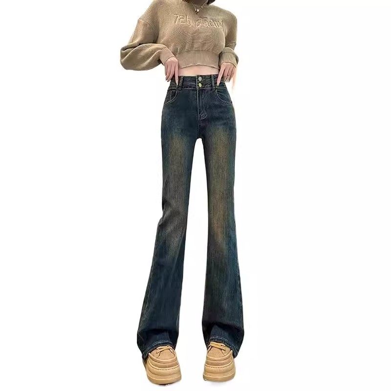 复古微喇牛仔裤女秋冬新款胖妹妹mm梨型身材高腰宽松显瘦阔腿长裤