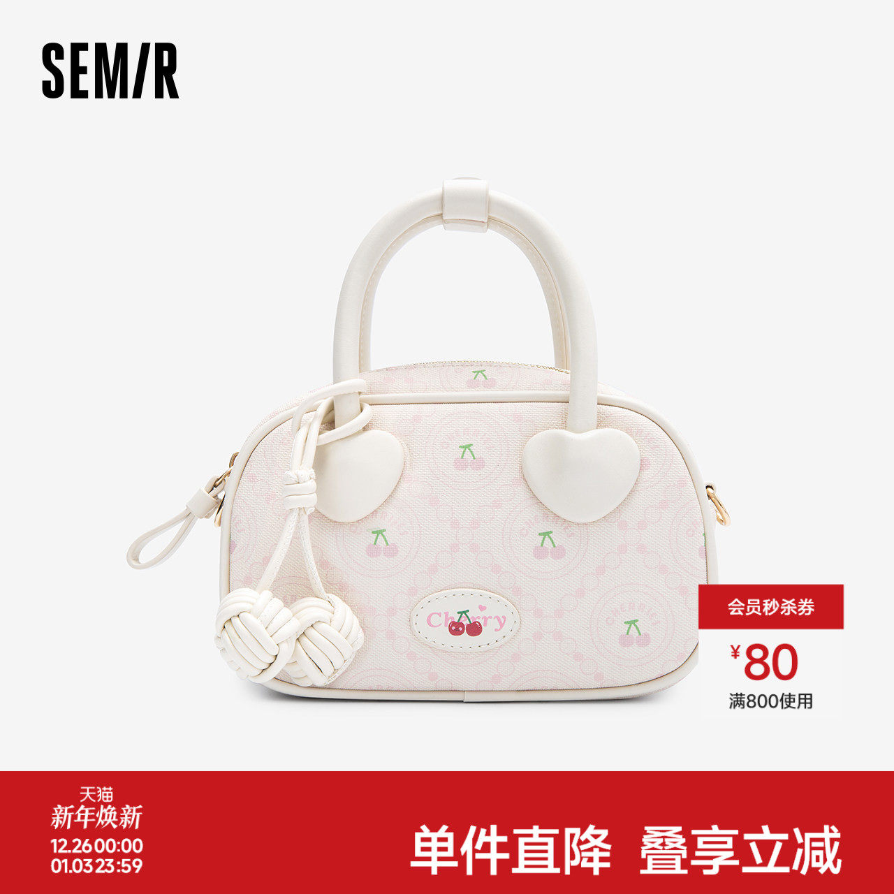 森马包包枕头包女2024新款甜美樱桃印花斜挎包时尚梦幻爱心手提包