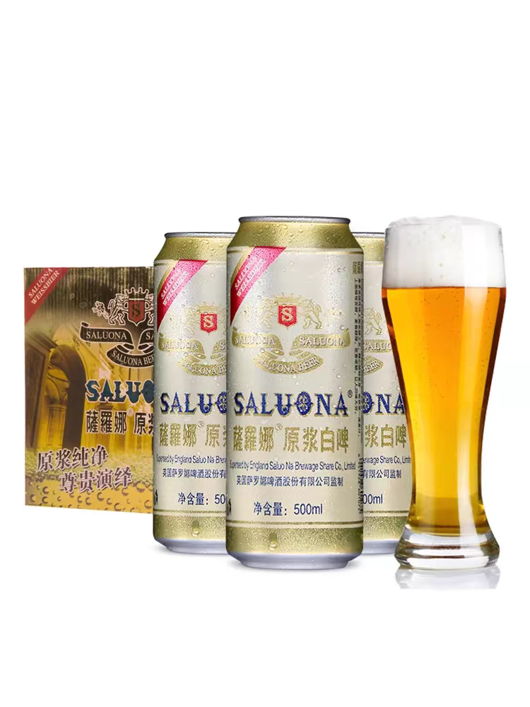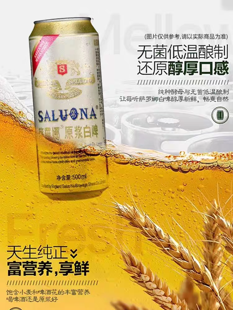 萨罗娜11度精酿啤酒整箱批发全麦小麦原浆白啤500ml*12/24罐听装