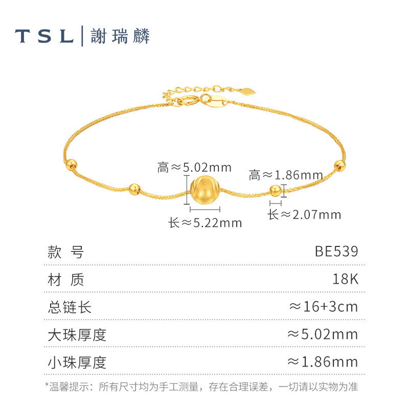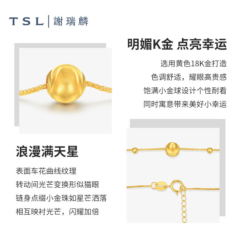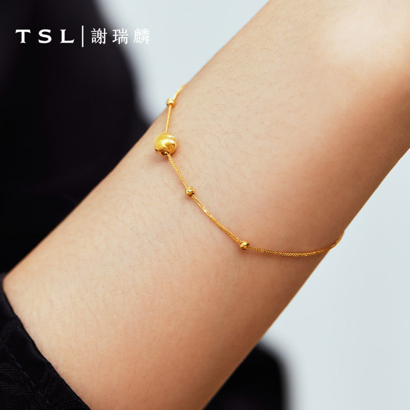 情人节TSL谢瑞麟猫眼珠18K金手链简约金珠手饰K黄女