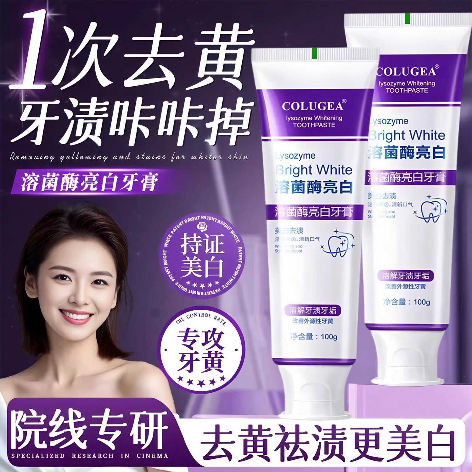 溶菌酶亮白牙膏美白清新口气紫色牙膏去渍炫白呵护牙龈齿清洁口腔