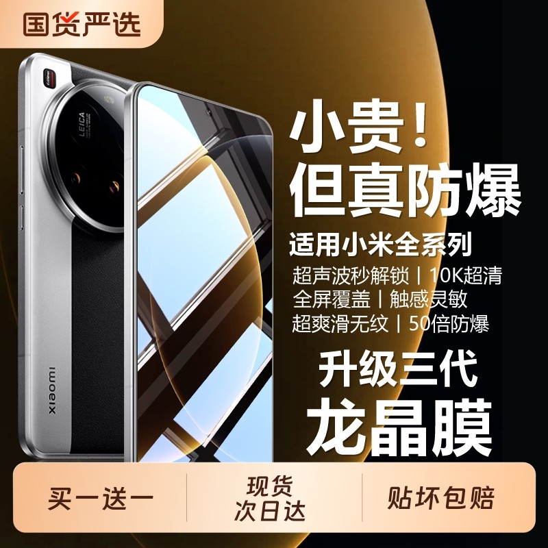 [超龙晶秒贴]第一卫适用小米17promax钢化膜15手机膜14红米k90/80/13/civi4/5pro防窥note12至尊版s新款ultra