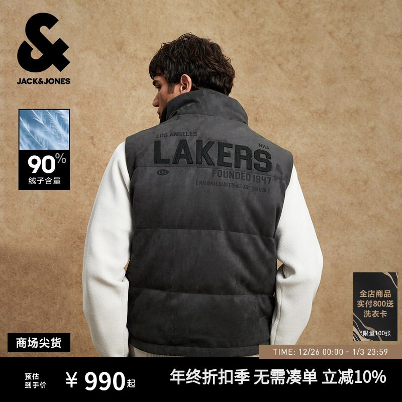 [商场尖货]杰克琼斯NBA联名湖人队男冬季马甲印花立领羽绒上衣