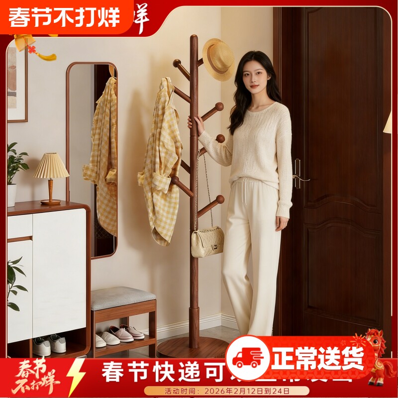 家逸纯榉木衣帽架卧室挂衣架落地衣服架子家用折叠实木房间晾衣架