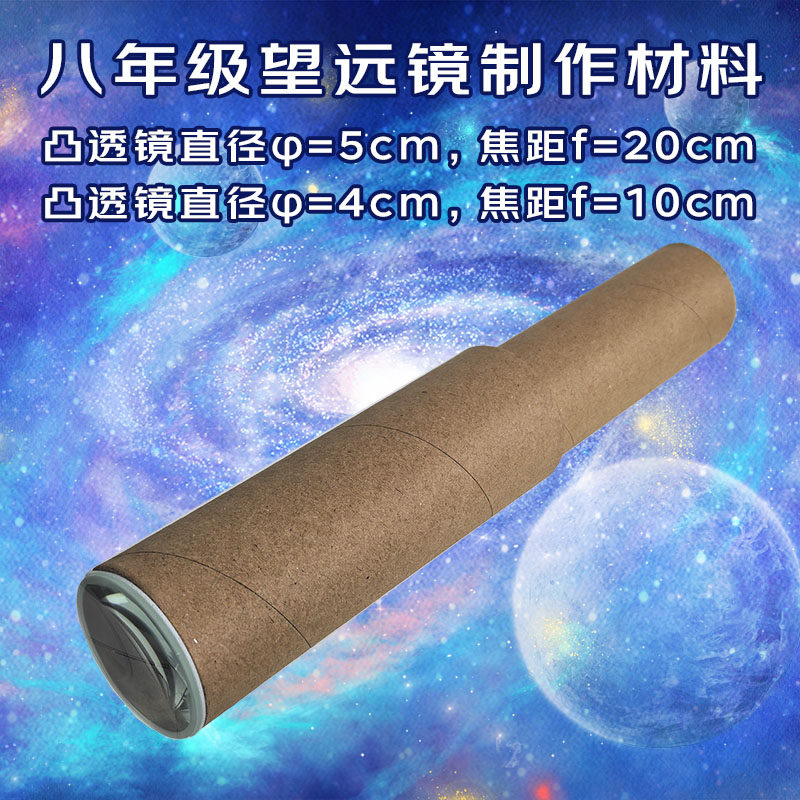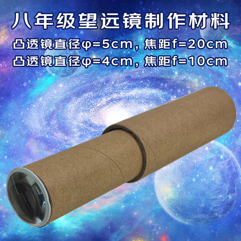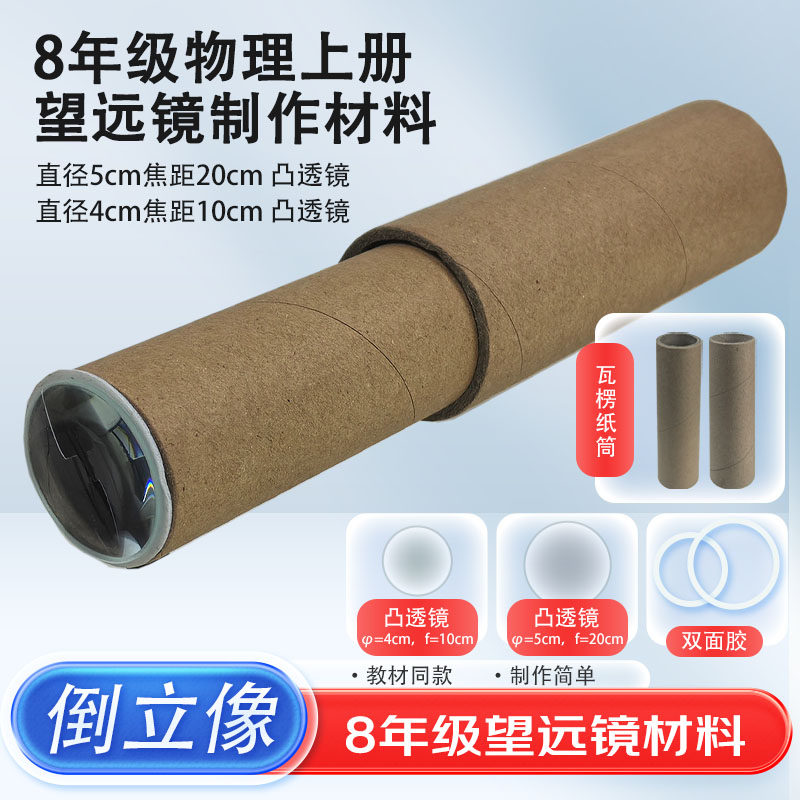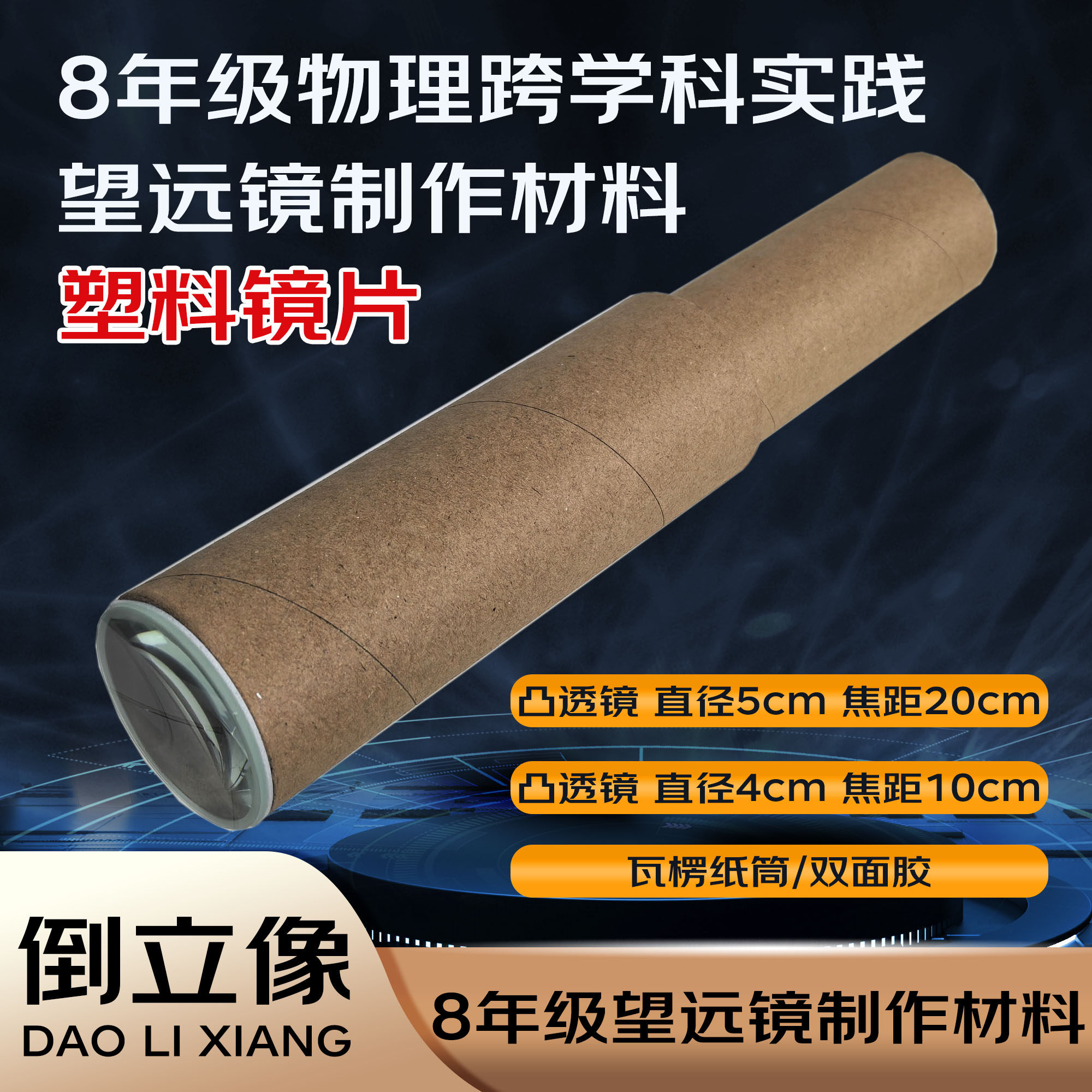 自制八年级物理制作望远镜材料瓦楞纸筒学生光学实验倒立像人教版 焦距20cm直径5cm的凸透镜 10cm直径4cm镜片