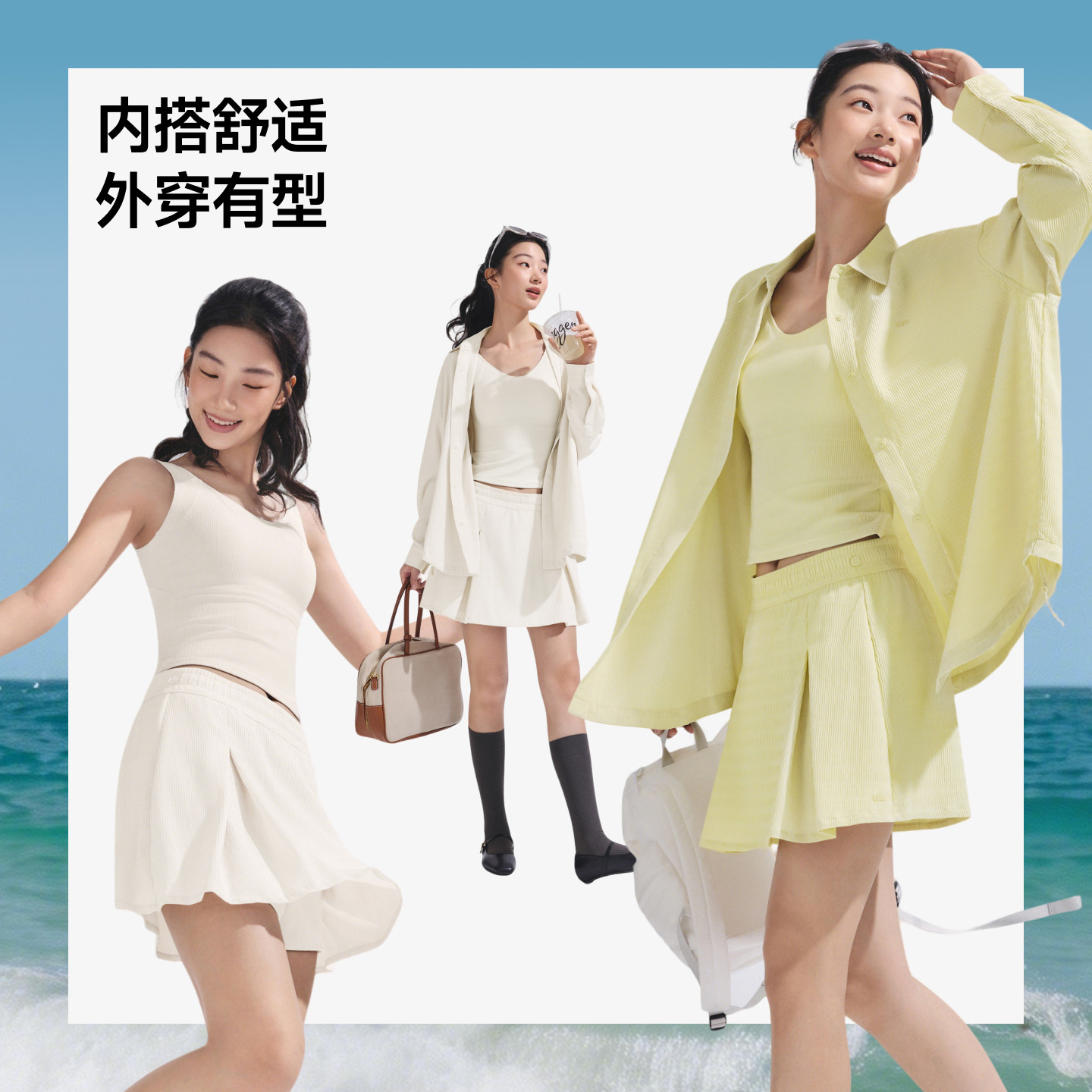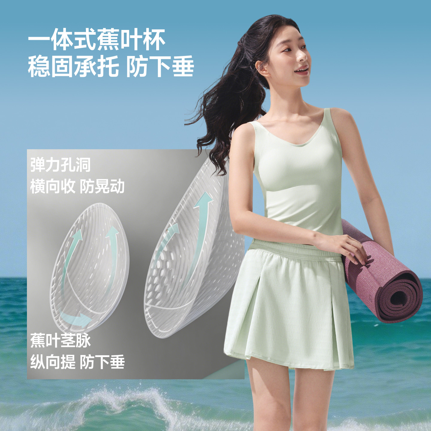蕉下女士防晒背心UPF2000+户外沙滩透气凉感自带胸垫白色无痕吊带