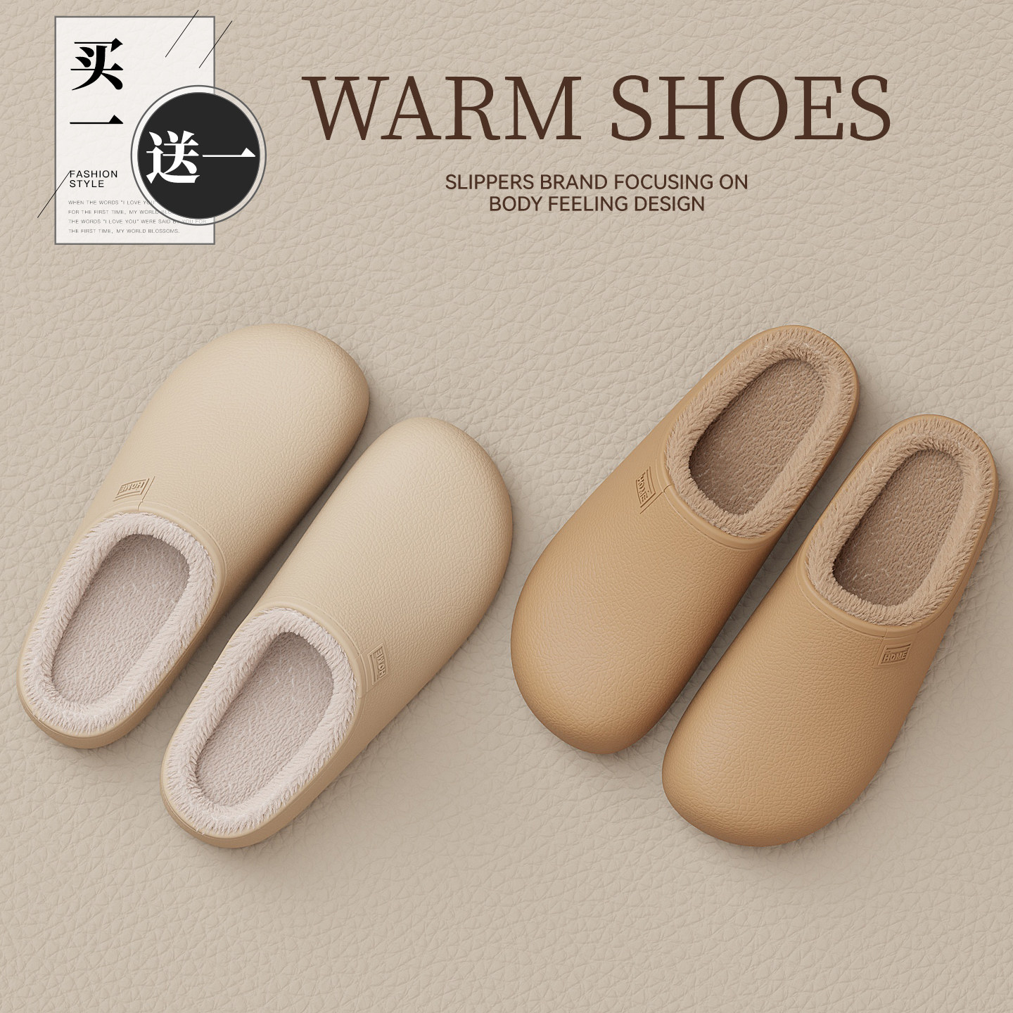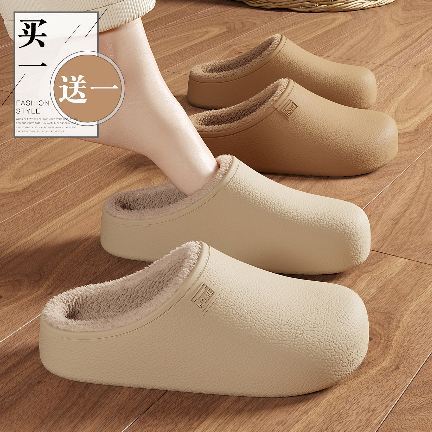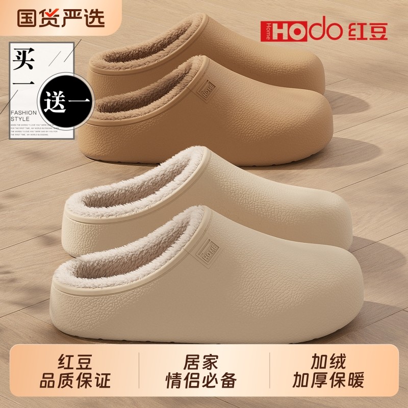 红豆买一送一棉拖鞋女款冬季情侣一对家居防滑防水保暖拖鞋男防臭