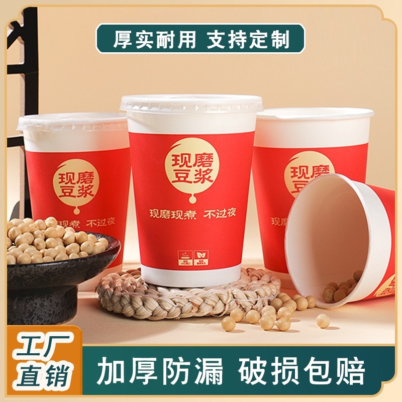 豆浆杯子一次性商用带盖批发加厚专用纸杯打包粥杯外带食品级早餐
