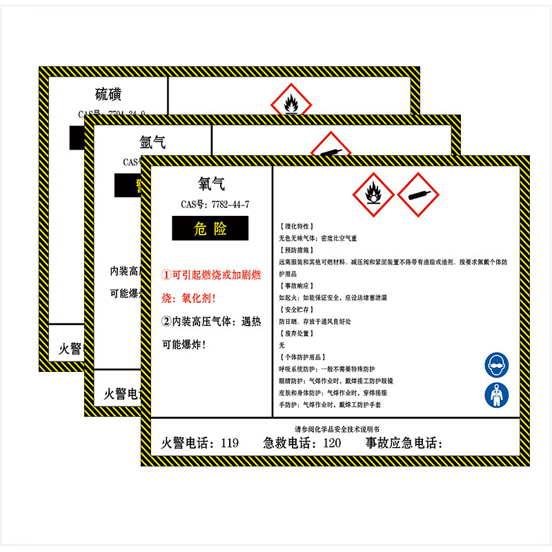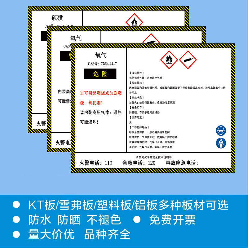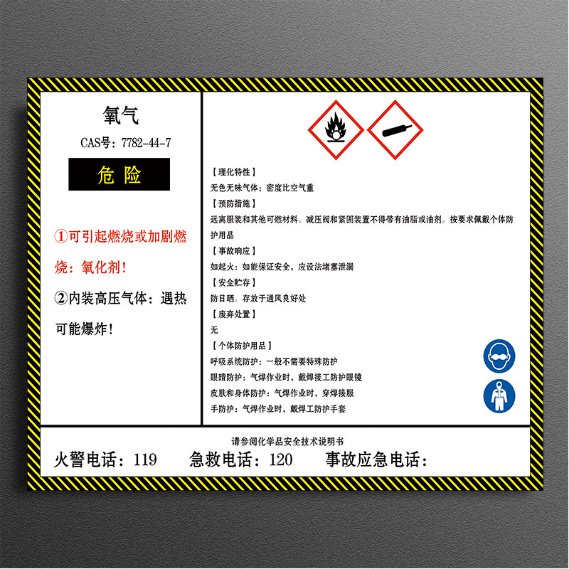 氧气化学品作业场所安全警示标志危化品标识牌PVC危险化学品安全周知卡警示标识仓库工厂危废间提醒标志牌贴
