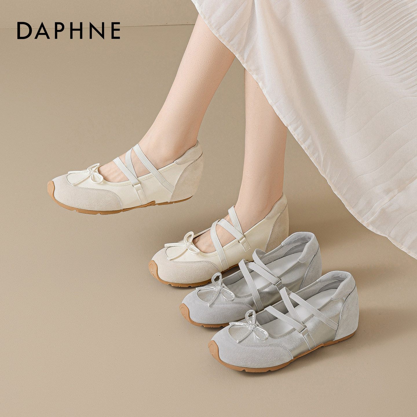 达芙妮运动玛丽珍鞋女内增高2026春季新款银色德训鞋软底芭蕾单鞋