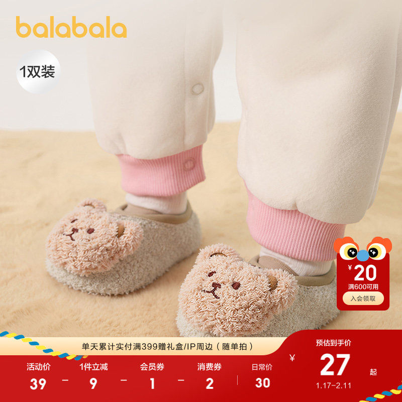 巴拉巴拉宝宝地板袜防滑点胶冬加绒2025年新款婴幼儿保暖袜学步袜