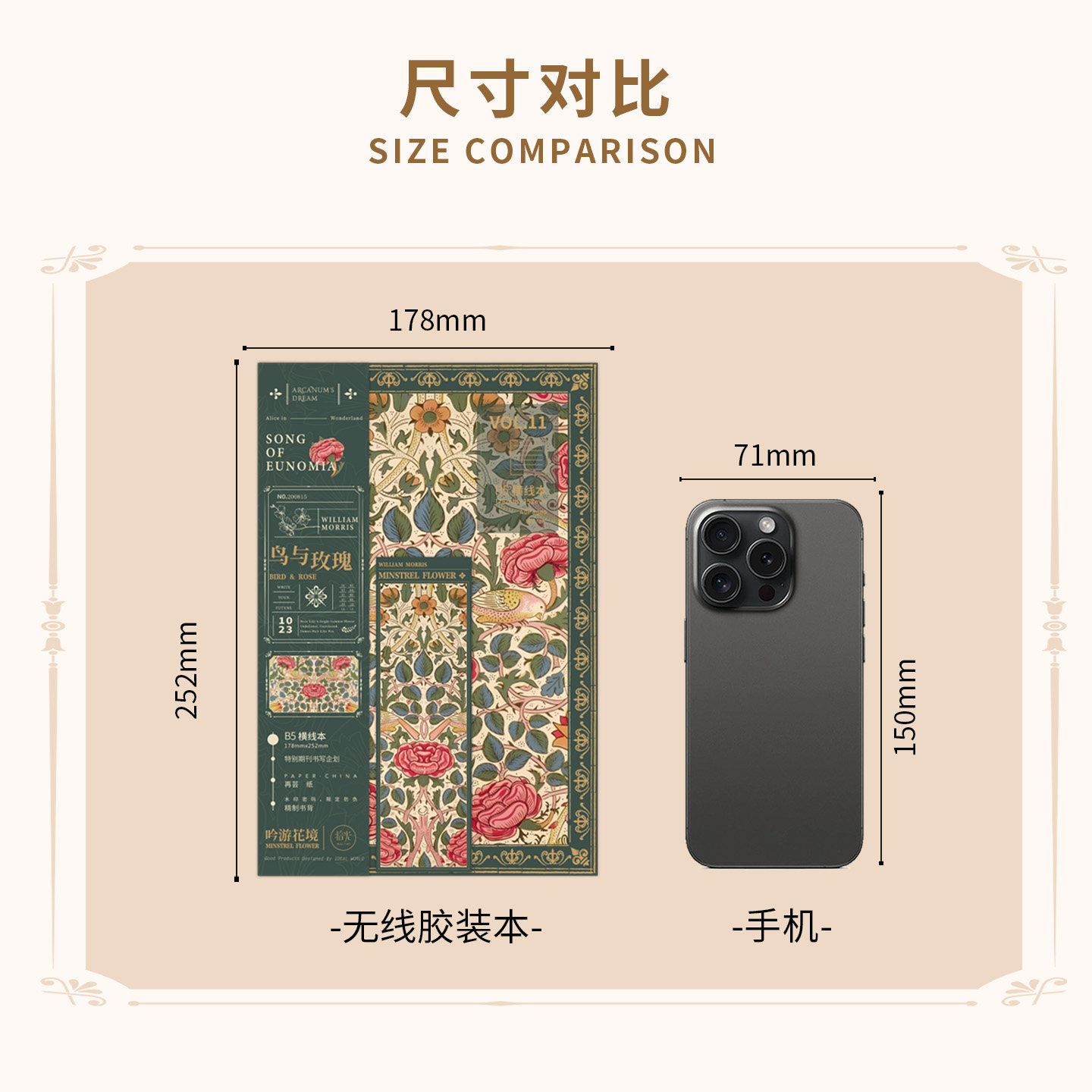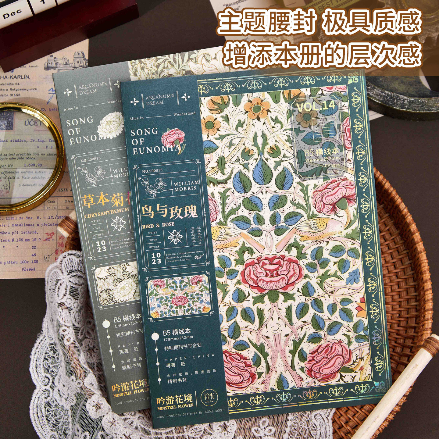拾光新款B5无线胶装本复古文艺笔记本花卉图案软抄本记事本轻奢百搭学生用品
