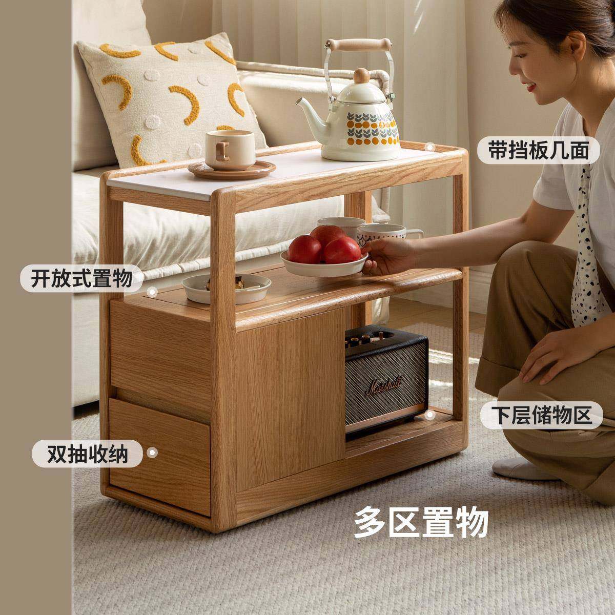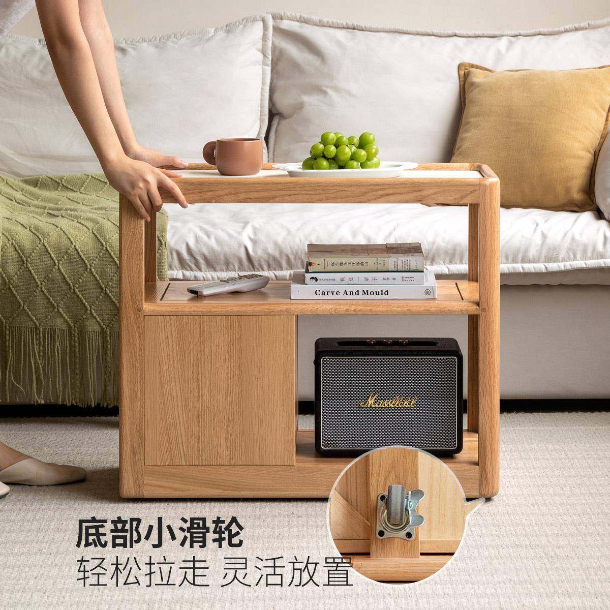 可移动茶几实木沙发边柜岩板侧边几带轮茶台小户型客厅2025新款