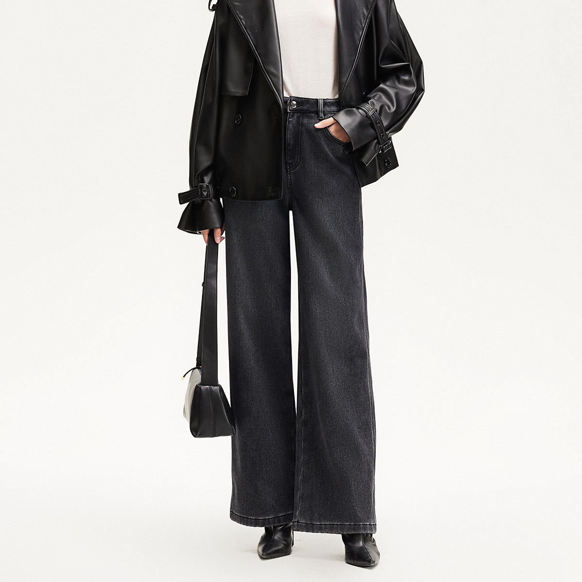 Vero Moda牛仔裤2026春季新款含棉加绒高腰复古阔腿裤326132042