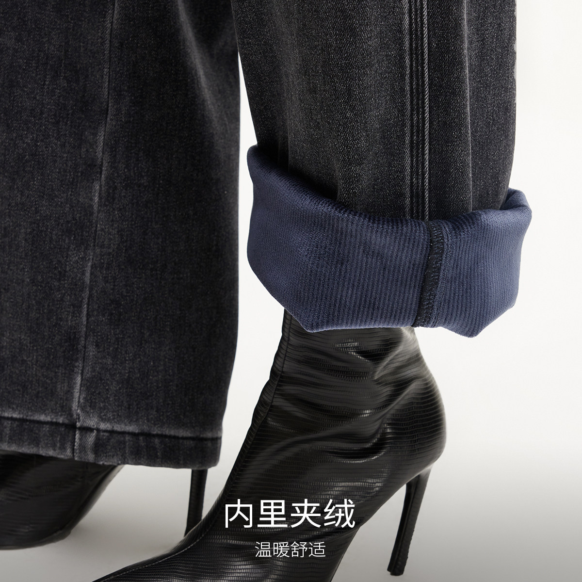 森柔|森马牛仔裤女冬季加绒保暖宽松喇叭裤弹力长裤2025新款港风
