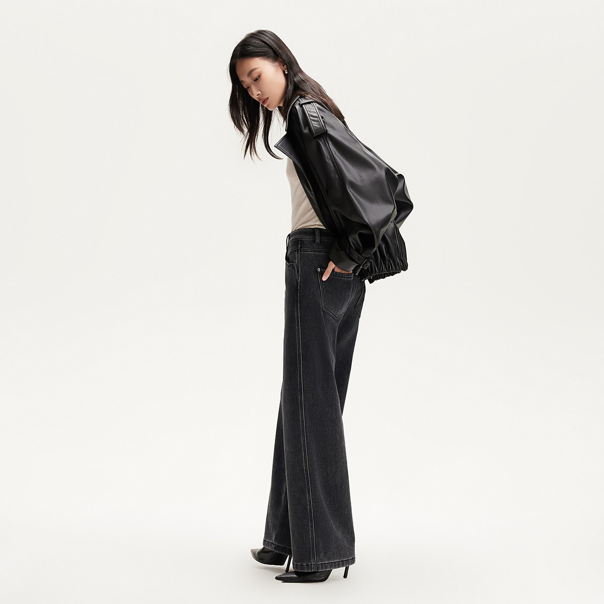 森柔牛仔|商场同款森马牛仔裤女翻边长裤2025秋季新款宽松阔腿裤
