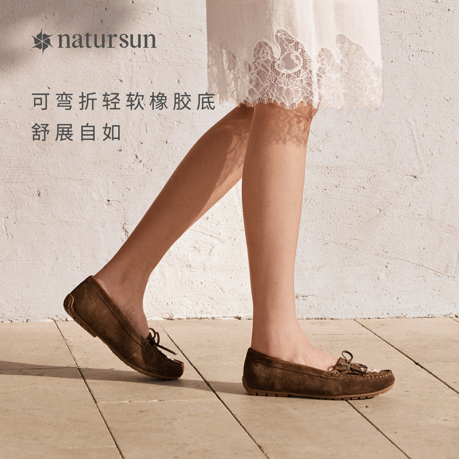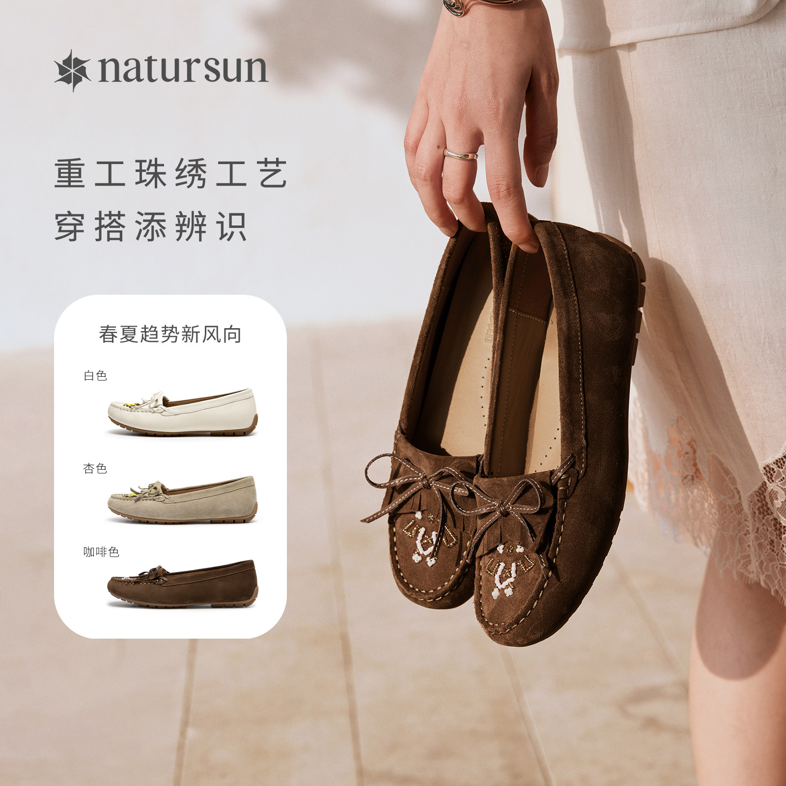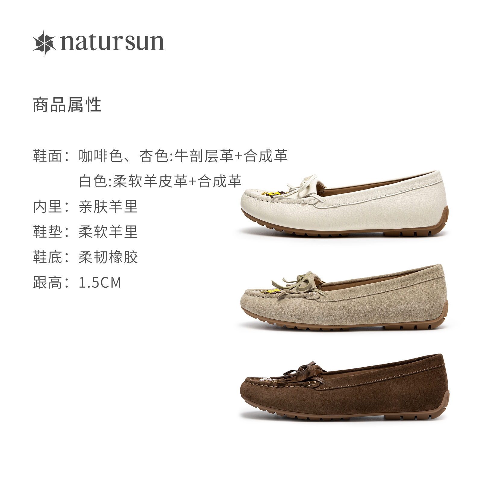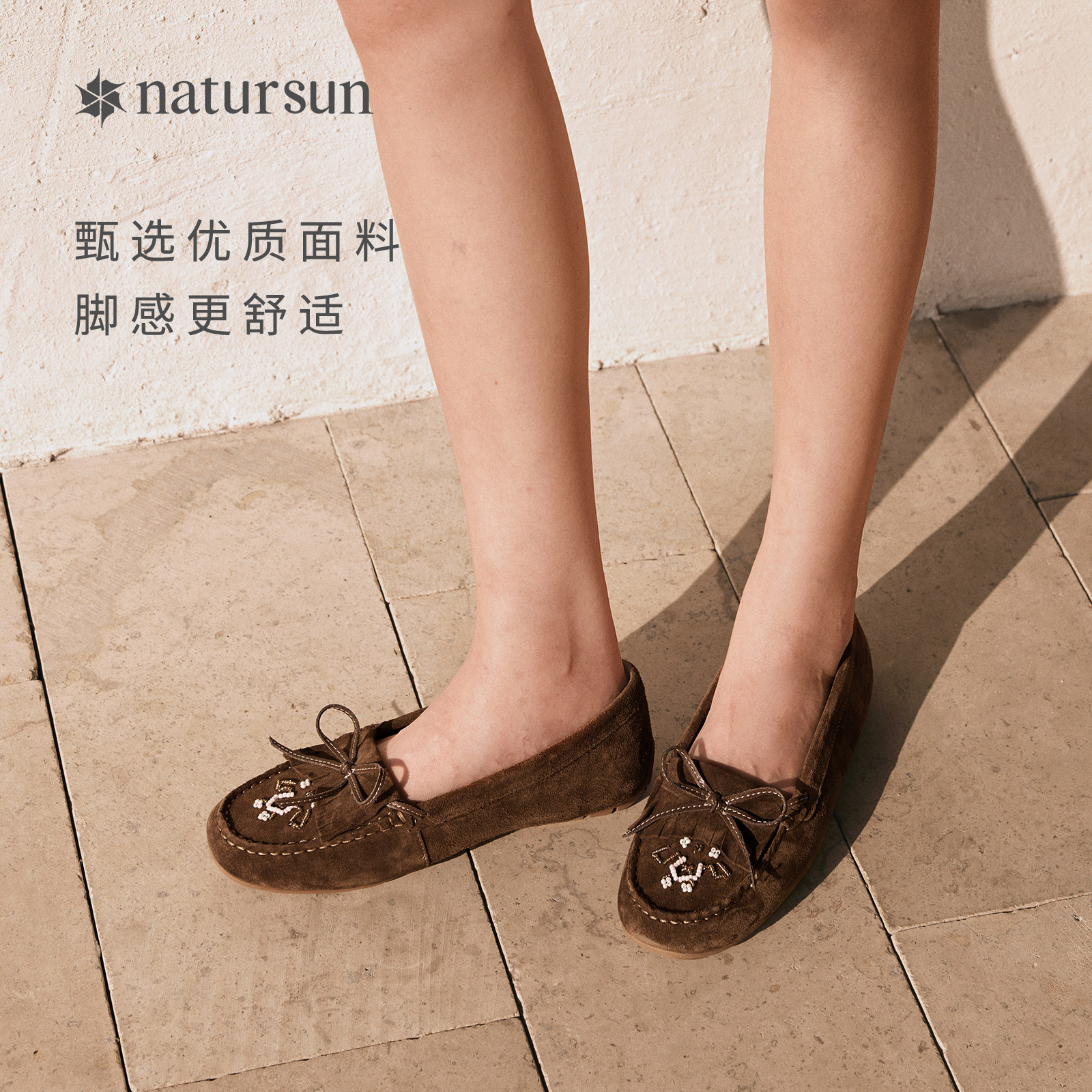 natursun刺绣平底单鞋2026春季新款女鞋舒适休闲豆豆鞋浅口乐福鞋