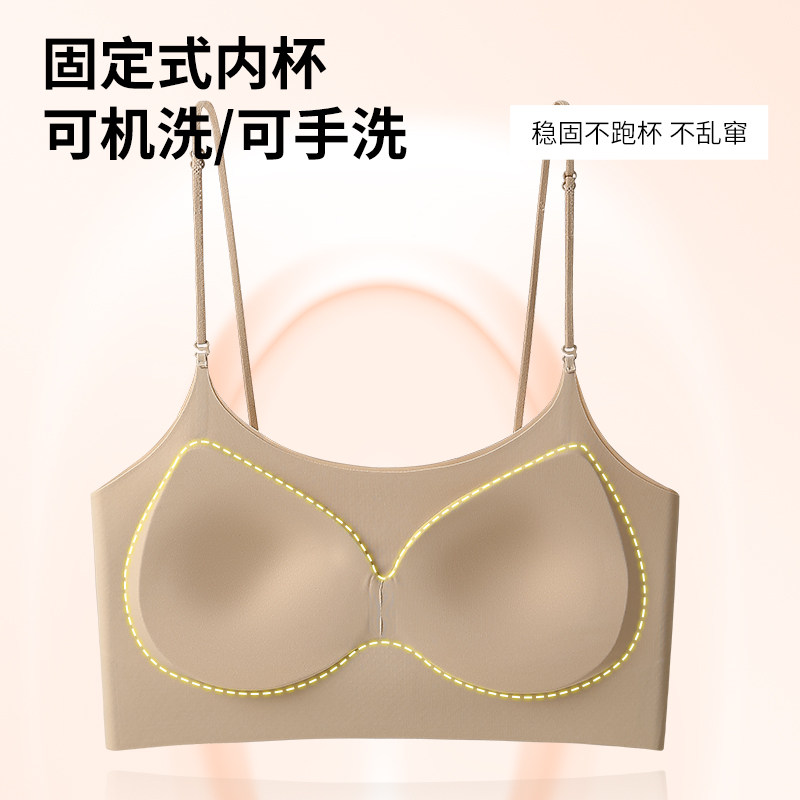 无痕美背抹胸内衣女小胸聚拢可外漏细肩带一体固定杯背心式文胸罩