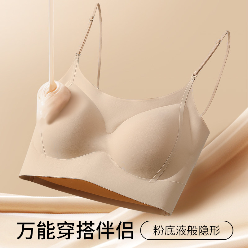 粉底液内衣女夏季薄款细肩带小胸聚拢肤色隐形无痕美背心式文胸罩