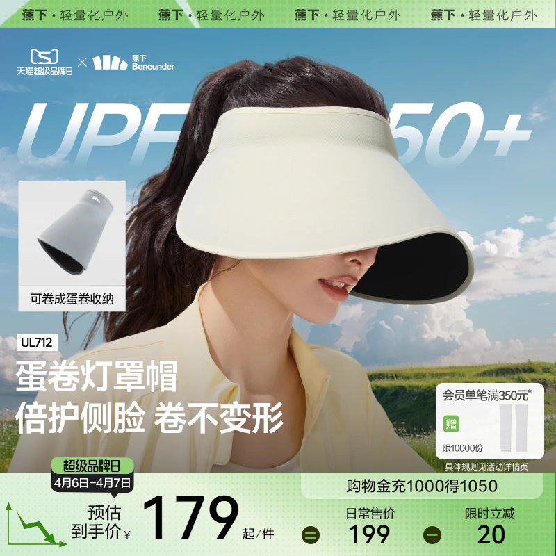 [林依轮直播间]蕉下防晒帽大檐全遮光无痕一体防紫外线蛋卷空顶