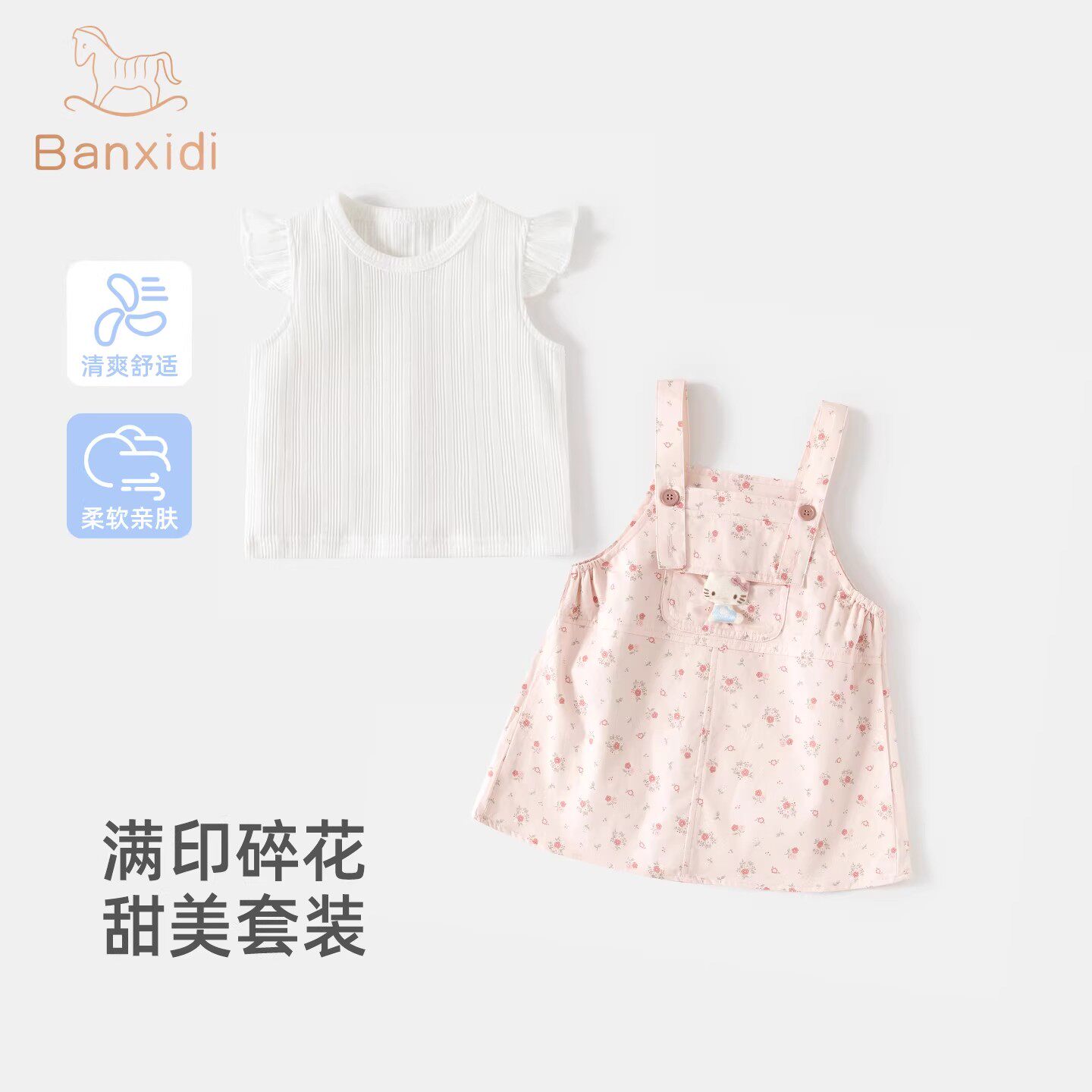 班喜迪女童连衣裙夏装2026新款裙子宝宝公主裙套装夏季儿童背带裙