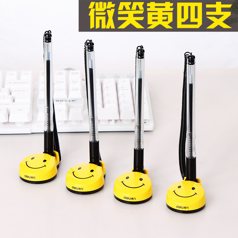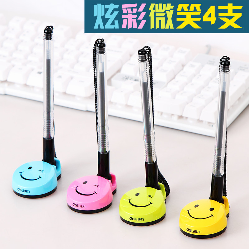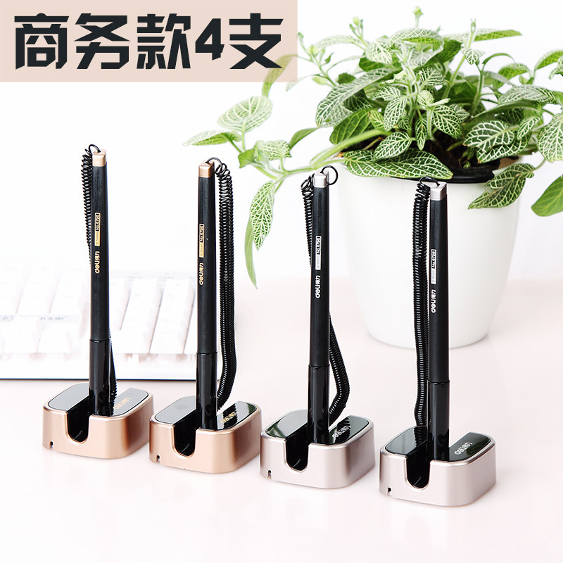 得力可爱台笔固定签字笔桌面柜台面粘在桌子上的带线中性笔固定银行办公黑色签字笔吧台水笔