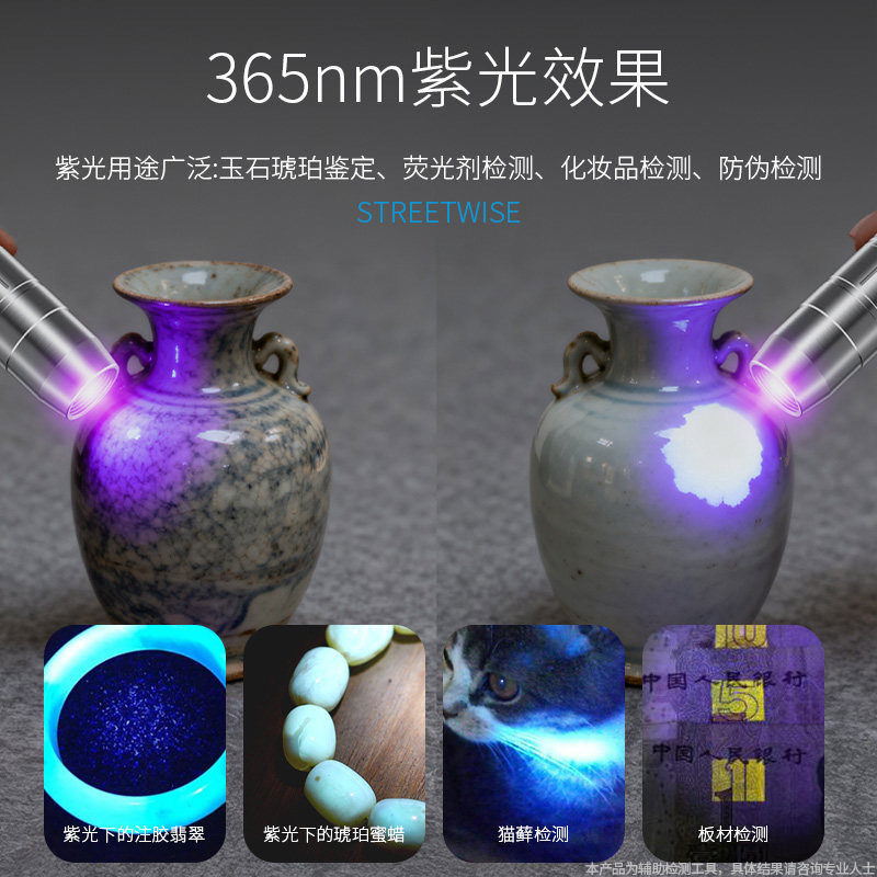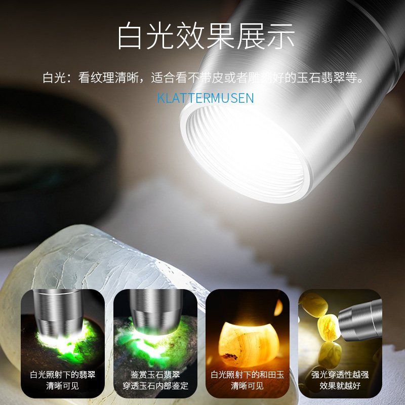 专业照玉石鉴定手电筒强光看珠宝翡翠蜜蜡专用鉴别文玩白黄紫光灯