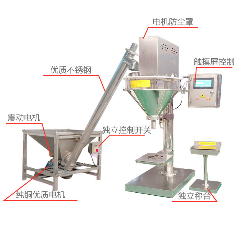 叶面肥粉末定量灌装机 螺杆蛟龙粉末灌装机 天鲁半自动粉末包装机
